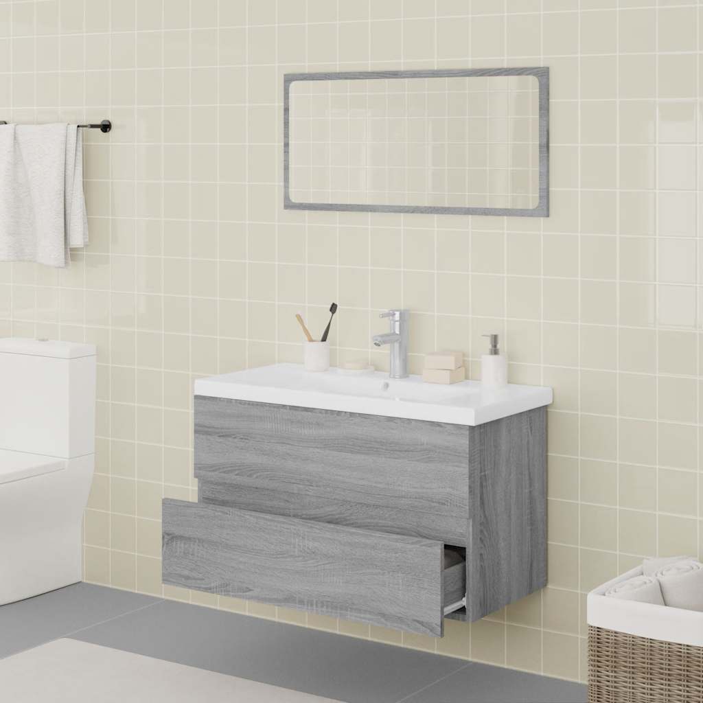 Dieses stilvolle Badmöbel-Set mit viel Stauraum ist eine ausgezeichnete Ergänzung für Ihr Badezimmer, denn es verleiht ihm ein aufgeräumtes und auffälliges Erscheinungsbild! Robustes Material: Der Unterschrank besteht aus Holzwerkstoff, einem Material von außergewöhnlicher Qualität mit glatter Oberfläche, das sich durch Festigkeit, Stabilität und Feuchtigkeitsbeständigkeit auszeichnet.Viel Stauraum: Der Waschbeckenunterschrank verfügt über eine Schublade und bietet dadurch viel Stauraum für die Aufbewahrung verschiedener Sachen in deinem Badezimmer.Praktisches Design: Auf der Oberseite dieses Badschranks findet dein Waschbecken den idealen Platz.Wandmontage: Der Badezimmerschrank und der Schminkspiegel lassen sich an der Wand montieren, um zusätzlichen Stauraum zu schaffen. Auf diese Weise kannst du deine Bodenfläche maximieren und leichter für Ordnung sorgen.Überlauffunktion: Ein Überlauf sorgt dafür, dass das Wasser abfließt, wenn das Waschbecken zu voll wird. Hinweis:Schrauben und Dübel für die Wandbefestigung sind nicht enthalten. Suchen und verwenden Sie die für Ihre Wände geeigneten Schrauben und Dübel. Wenn Sie unsicher sind, suchen Sie professionelle Hilfe. Lesen und befolgen Sie jeden Schritt der Anleitung sorgfältig.Der Wasserhahn und die Ablaufgarnitur sind nicht im Lieferumfang enthalten.Jedes Produkt wird mit einer Montageanleitung in der Verpackung für eine einfache Montage geliefert.