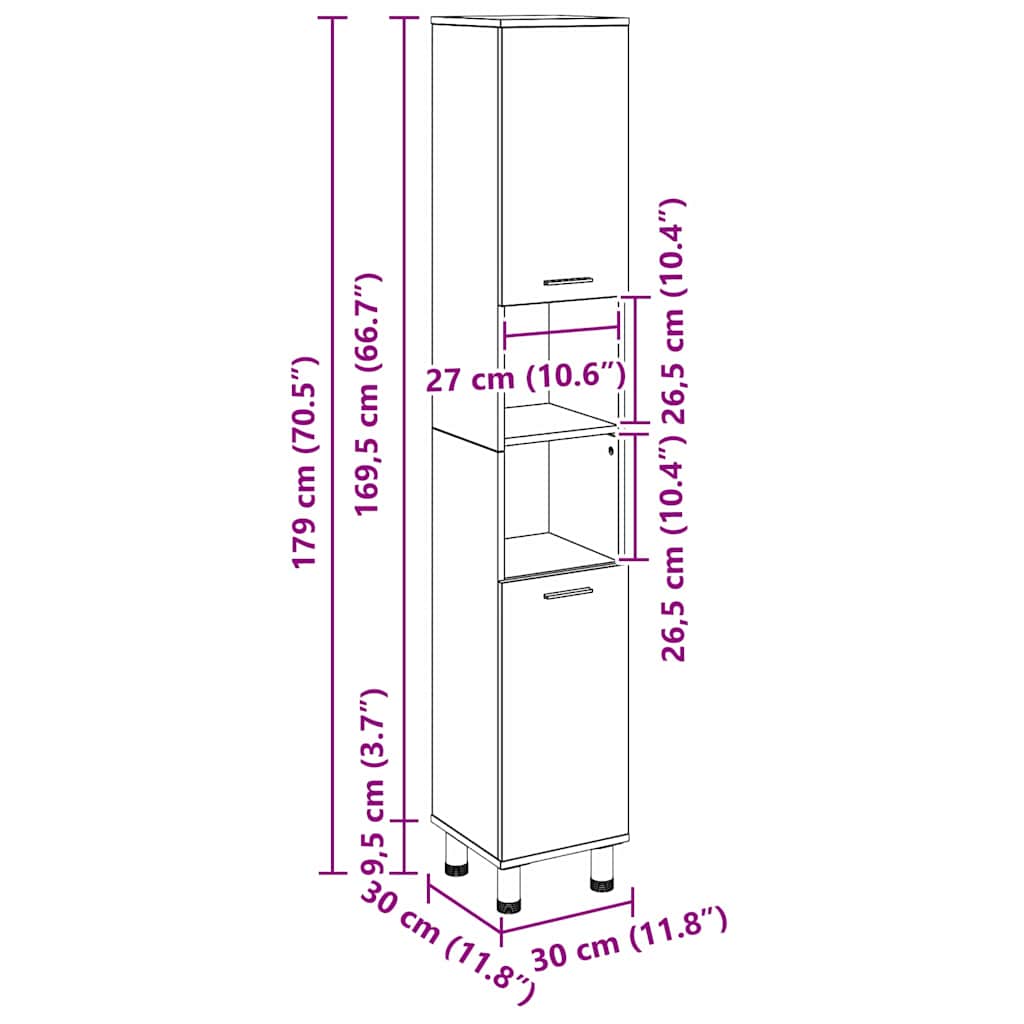 Dieser moderne BadezimmerSchrank aus schwarzem Eichenholz bringt Eleganz und Praktikabilität in dein Badezimmer. Mit seinen klaren Linien und dem minimalistischen Design nutzt er den vertikalen Raum optimal, damit deine alltäglichen Essentials ordentlich bleiben. Egal ob kleines oder großes Badezimmer, er passt überall rein. Der Schrank hat eine tolle schwarze Eichenoberfläche, die für Eleganz sorgt und perfekt in moderne Einrichtungen passt. Sechs clever platzierte Fächer halten deine Toilettenartikel, Handtücher und andere Sachen ordentlich verstaut, sodass dein Raum aufgeräumt und übersichtlich bleibt. Hergestellt aus strapazierfähigem Holzwerkstoff, ist dieser Schrank so gebaut, dass er lange hält und dem täglichen Gebrauch standhält, während er gleichzeitig gut aussieht. Sehr pflegeleicht, einfach mal mit einem feuchten Tuch abwischen – ideal für ein geschäftiges Leben. Mit 30 x 30 x 179 cm bietet er viele Aufstellmöglichkeiten in jedem Badezimmer und ist eine schicke, funktionale Lösung zur Aufbewahrung.