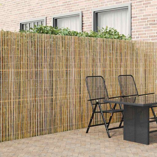 Dieser natürliche Bambuszaun ist ein tolles Outdoor-Element, das die Schönheit deines Gartens oder deiner Terrasse verstärkt. Hergestellt aus hochwertigem Bambus, bringt er rustikalen Charme und verleiht jedem Außenbereich eine Note von natürlicher Eleganz. Seine rechteckige Form und die braune Farbe fügen sich ganz natürlich ein und sorgen für Privatsphäre, ohne auf Stil zu verzichten. Perfekt für alle, die entspannende Außenbereiche schaffen wollen, ist dieser Bambuszaun die ideale Mischung aus Funktionalität und Schönheit. Authentisches Bambusmaterial Aus hochwertigem Bambus gefertigt, zeigt dieser Zaun eine natürliche Textur, die perfekt in deine Außenlandschaft passt. Die Stärke des Bambus sorgt dafür, dass der Zaun lange hält und regenfest ist. Die Materialwahl sorgt für praktischen Nutzen und einfache Pflege, während die natürliche Schönheit erhalten bleibt. Roll-Design Mit dem Roll-Design lässt sich der Zaun einfach lagern und transportieren. Das ist besonders praktisch, wenn du ihn saisonal nutzen möchtest. So kannst du ihn ganz leicht bei Nichtgebrauch bewegen und lagern. Er passt sich verschiedenen Außenbereichen an und macht die Installation einfach, ohne komplizierte Werkzeuge oder Prozesse - ideal für flexible Anordnungen je nach Bedarf. Wetterbeständigkeit Die Eigenschaften des Bambus, zusammen mit seiner wasserabweisenden Fähigkeit, bieten tollen Schutz gegen die Elemente, die in Gärten und auf Terrassen auftreten. Das gewährleistet eine lange Nutzung über die Jahreszeiten hinweg, ohne die Struktur und das Aussehen des Zauns zu beeinträchtigen - perfekt für Eleganz und Funktionalität. Rustikaler Stil Die natürliche Schönheit von Bambus verleiht dem Zaun einen rustikalen Stil, der jede Außenumgebung aufwertet. Er bringt einen einfachen, eleganten Charme, der zu vielen Gartenthemen passt. Die ästhetische Qualität sorgt für einen tollen Kontrast zur üppigen Pflanzenwelt und holt die Ruhe der Natur direkt zu dir. Pflegehinweise Für eine lange Lebensdauer solltest du bei der Reinigung auf scharfe Chemikalien und Scheuermittel verzichten. Einfach mit Wasser und einem milden Reinigungsmittel abspülen, um Staub und Schmutz zu entfernen. Ein Sprühstoß mit schützendem Bambusöl verlängert die Lebensdauer und erhält die Farbe, damit der Zaun das ganze Jahr über ansprechend aussieht.
