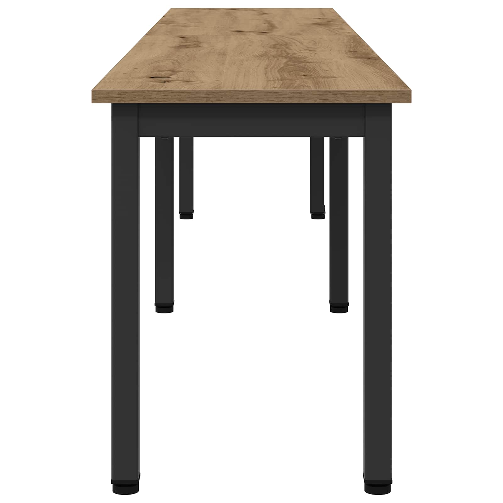 Diese Moderne Sitzbank ist eine stylische und praktische Wahl für Wohn- und Esszimmer. Ihr einfaches, rechteckiges Design fügt sich nahtlos in verschiedene Einrichtungsstile ein. Ideal für den Innenbereich, bringt sie zeitgenössische Eleganz und ist perfekt für gemütliche Abende oder entspannte Zusammenkünfte. Materialien: Diese Bank ist aus Holzwerkstoff gemacht und hat eine glatte Oberfläche, die leicht zu reinigen ist. So hast du lange Freude an ihrem eleganten Look. Enthaltene Komponenten: Die stabilen Metallbeine sorgen für guten Halt. Das coole quadratische Design zieht die Blicke auf sich und macht sie zu einem tollen Hingucker in jedem Raum. Merkmale / Funktion / Design: Diese Bank kombiniert einfaches Design mit Funktionalität. Ihre rechteckige Form passt perfekt zu verschiedenen Esstischen und macht die Essbereiche zugleich hübsch und nützlich. Sie ist robust und hält dem täglichen Gebrauch stand, ohne dabei an Eleganz zu verlieren. Empfohlene Anwendungen: Diese Bank ist eine super Ergänzung für Sitzgelegenheiten in Wohn- und Esszimmern. Sie ist ideal für gemeinsame Abende und bietet praktische Sitzmöglichkeiten bei Familienessen oder Feiern. Pflege & Wartung: Pflegeleicht, du kannst die Oberfläche einfach mit einem feuchten Tuch abwischen. So bleibt sie auch nach längerer Nutzung schön.
