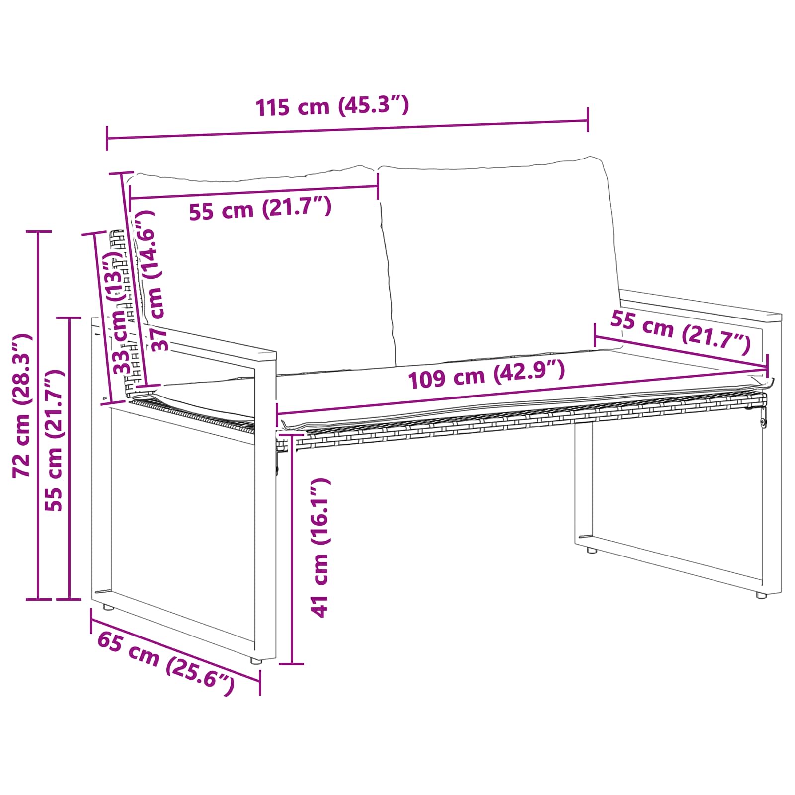 Diese Gartenbank ist eine robuste und stylische Sitzgelegenheit für Gärten, Terrassen und Patios. Mit ihrem modernen Design bringt sie eine schicke Mischung aus Einfachheit und Funktionalität, erkennbar an klaren Linien und minimalen Verzierungen. Das Gesamtbild wird durch die Kombination aus UV-beständigem Rattan und Stahl abgerundet, ideal um jedem Außenbereich im Frühling oder Sommer stilvollen Komfort zu verleihen. UV-beständiges Rattan: Die Bank ist aus Rattan gefertigt, das UV-Strahlen trotzt und dabei sein Aussehen und seine Funktionalität behält. So bleibt sie über die Jahreszeiten hinweg attraktiv und langlebig, perfekt für sonnige Gärten und Terrassen. Massive Akazienarmlehnen: Die Armlehnen bestehen aus solidem Akazienholz, was stabilen Komfort bietet und die Haltbarkeit der Bank erhöht. Dieses Material verbindet visuelle Anziehungskraft mit robuster Funktionalität - ideal für den dauerhaften Gebrauch im Freien. Bequeme Memory-Schaumkissen: Die Sitzkissen sind mit Memory Foam gefüllt, der sich perfekt an deinen Körper anpasst und maximalen Komfort bietet. Durch Reißverschluss ist das Abnehmen zur Reinigung oder Lagerung einfach, was die Pflege leicht macht. Stabile Stahlbeine: Die Bank hat ein Stahlgestell, das zuverlässigen Halt bietet und Sicherheit während des Sitzens gewährleistet. Das Design ist besonders hilfreich für schwerere Benutzer und auf unterschiedlichen Untergründen, so dass du bei jedem Gebrauch ein sicheres Gefühl hast. Flaches Armlehnen-Design: Das schlichte flache Design der Armlehnen trägt zum minimalistischen Charme der Bank bei und macht sie benutzerfreundlich. Du kannst deine Arme bequem ablegen, ideal für alles von entspanntem Lesen bis zu geselligen Treffen.