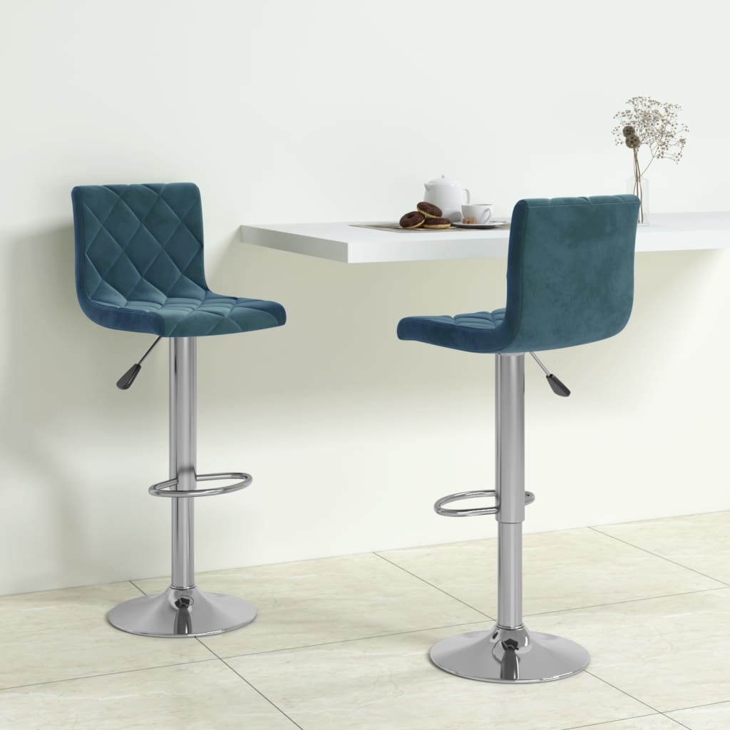 Barhocker 2 Stk. Blau Samt