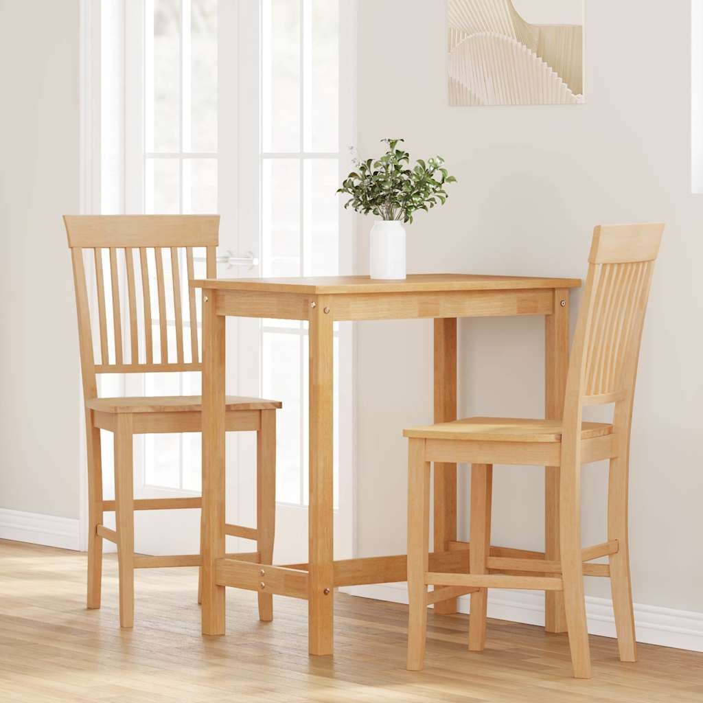 Barhocker 2 Stk. Natur Massivholz Gummibaum