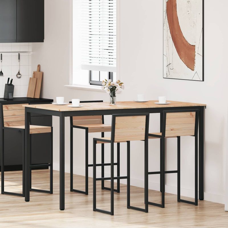 Dieser moderne Bartisch mit seinen klaren Linien und schlichtem Design bringt Schwung in dein Esszimmer oder deine Küche. Die elegante Tischplatte vereint Schlichtheit und Funktionalität und schafft eine gemütliche Atmosphäre zum Essen oder für Gäste. Mit einer robusten Metallkonstruktion kombiniert er industriellen Charme mit heimischem Flair – der ideale Mittelpunkt für alle, die einen minimalistischen Stil lieben. Massivholz Kiefer Die Tischplatte aus hochwertigem, massivem Kiefernholz ist nicht nur langlebig, sondern auch super hübsch und passt perfekt zum Alltagsgebrauch. Die natürliche Maserung macht jedes Stück einzigartig. Moderne Metallbeine Die quadratischen Metallbeine sorgen für eine coole, minimalistische Ästhetik und bieten ein stabiles Fundament, damit nichts wackelt. H-förmige Balkenunterstützung Der H-förmige Balken unter der Tischplatte sorgt für hohe Stabilität und hilft, die massive Tischplatte perfekt zu unterstützen. So ist er für alle Zusammenkünfte geeignet. Für innen geeignet Dieser Bartisch ist nur für drinnen gedacht und passt super in Küchen oder Esszimmer. Er lässt sich leicht in lässige oder formelle Essbereiche integrieren und sieht überall gut aus. Einfache Pflegehinweise Das edle Design ist ganz leicht zu reinigen – ein trockenes Tuch reicht völlig aus. So hast du mehr Zeit zum Genießen mit Familie und Freunden.
