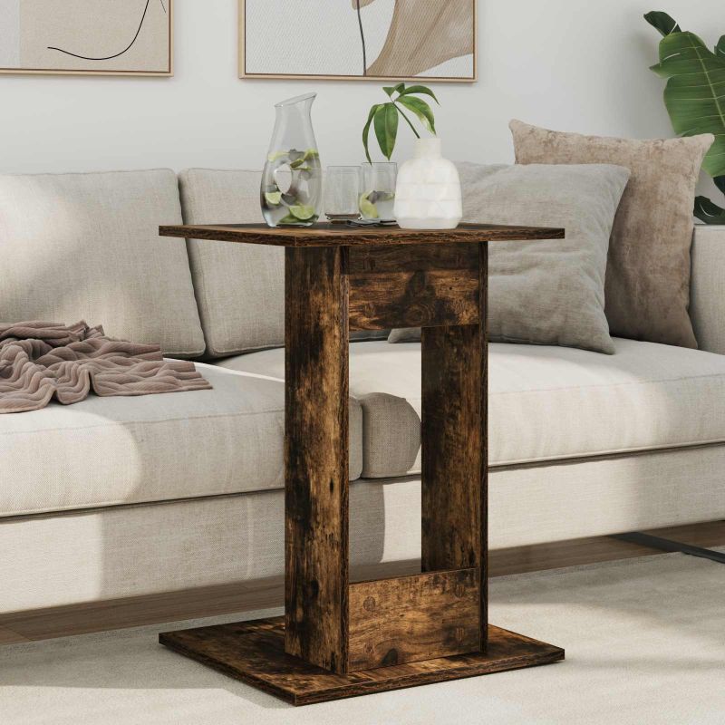 Dieser moderne Beistelltisch ist die perfekte Ergänzung für dein Wohnzimmer. Er ist stylish und praktisch zugleich und eignet sich hervorragend dafür, Lampen, Getränke oder andere wichtige Sachen neben Sofa oder Stühlen abzustellen. Holzwerkstoff-Konstruktion Der Beistelltisch ist aus hochwertigem Holzwerkstoff gemacht, der strapazierfähig und elegant ist – ideal für den Alltag. So bleibt alles stabil, und er sieht auch toll aus. Rechteckige Form Mit seinen 45 x 40 x 62,5 cm bietet dieser Tisch viel Platz für alles Mögliche. Sein durchdachtes Design ist perfekt für kleine Räume, wo jeder Platz zählt, ohne dass du auf Stil oder Funktionalität verzichten musst. Nur für den Innenbereich Dieser Tisch ist speziell für Innenräume gemacht und passt super in moderne Wohnzimmer. Er lässt sich leicht in deine bestehende Einrichtung integrieren und sorgt für mehr Eleganz in deinem Raum. Robustes Design Die solide Bauweise sorgt dafür, dass der Tisch dem täglichen Gebrauch standhält und dir lange Freude bereitet. Er gibt dir die nötige Unterstützung für alles, was du auf ihm ablegen möchtest. Einfache Pflege Um ihn schön zu halten, einfach mit einem weichen Tuch abwischen und scharfe Chemikalien vermeiden. So bleibt er das ganze Jahr über ein Hingucker.