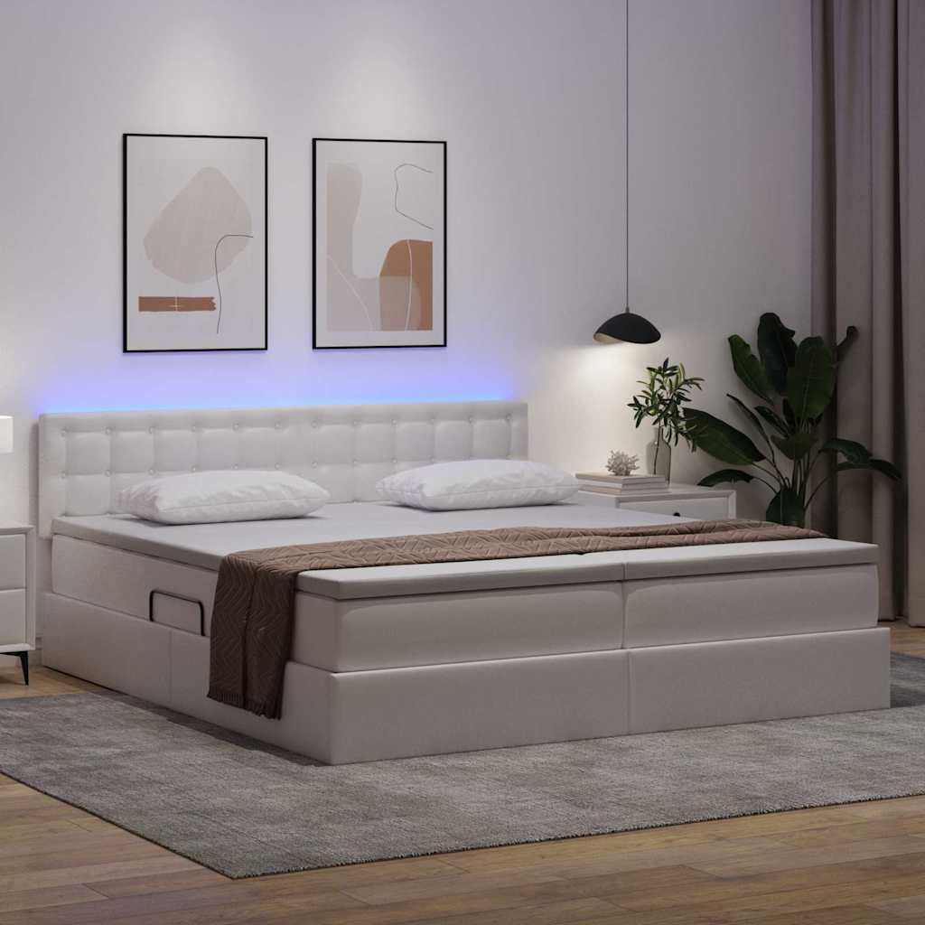 Dieses geniale Stauraumbett mit Matratze bietet eine schicke Lösung für moderne Wohnräume, wo Stil und Funktionalität aufeinandertreffen. Mit klaren Linien und einem minimalistischen Ansatz passt dieses Möbelstück perfekt in jeden zeitgemäßen Schlafraum. Es ist ideal für alle, die den Raum optimal nutzen wollen, ohne auf Stil zu verzichten, und bietet clevere Funktionen mit verstecktem Stauraum unter dem Bett. Die Kunstlederoberfläche sorgt für einen luxuriösen Touch und macht es zu einem echten Hingucker, perfekt zum Entspannen. Kunstlederpolsterung: Das schicke Kunstleder umhüllt den Bettrahmen und das Kopfteil, bietet einen sanften Griff und die ansprechende Optik von Leder. Es ist strapazierfähig und sieht auch nach täglichem Gebrauch gut aus – die moderne Optik unterstützt jede Schlafzimmergestaltung. Großer Stauraum unter dem Bett: Mit einem hydraulischen Hebesystem kommt ein großzügiger Stauraum unter der Matratze zum Vorschein. Dieser praktische Platz ist ideal für Bettwäsche, persönliche Dinge oder saisonale Kleidung, ladet die Effizienz des Raums auf. Der Gaslift funktioniert geschmeidig und macht den täglichen Gebrauch ganz unkompliziert. LED-Ambiente-Beleuchtung: Mit USB-betriebenen LED-Streifen hat das Bett eine elegante Beleuchtungslösung, die für sanftes Nachtlicht sorgt oder deinem Schlafzimmer eine coole Note verleiht. Die flexiblen LEDs bieten verschiedene Lichtintensitäten und garantieren eine angenehme Atmosphäre, die auf deine Stimmung abgestimmt ist. Mittelfeste Matratze: Die Matratze bietet die perfekte Balance aus Unterstützung und Komfort. Sie kombiniert Schaumstoff mit Taschenfedern, um die Bewegungsübertragung zu minimieren. So schläfst du ruhig und bequem, egal in welcher Position, und das Design erfüllt die unterschiedlichen Komfortbedürfnisse aller Schlafenden. Modernes Design: Mit einem schwarzen Rahmen hat das Bett ein modernes und stilvolles Aussehen, das zu eleganten Designs passt. Die rechteckige Form sorgt für ein klaren Look und eine saubere Atmosphäre, die durch funktionale Aspekte wie den erhöhten Stauraum und die intelligenten Beleuchtungsfunktionen ergänzt wird.