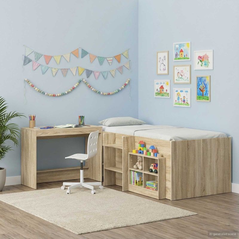 Dieser moderne Bettschreibtisch bringt Funktion und Stil zusammen und pepp dein Schlafzimmer mit minimalistischem Design auf. Seine schlanke rechteckige Form passt perfekt zu jeder modernen Einrichtung und bietet eine praktische Fläche für Lernen, Arbeiten oder auch mal Snacks im Bett. Er ist so konzipiert, dass er sich nahtlos in dein Schlafzimmer integriert, ohne Platz wegzunehmen, und sorgt für einen sauberen, einfachen Look. Holzwerkstoff-Bau Dieser Schreibtisch ist aus strapazierfähigem Holzwerkstoff gefertigt. Er bietet eine glatte und stabile Oberfläche – ideal für den täglichen Gebrauch. Das Material sorgt dafür, dass dein neuer Schreibtisch lange hält und immer gut aussieht. Minimalistisches Design Mit seiner schicken rechteckigen Form zeigt der Bettschreibtisch modernes Design mit klaren Linien. Sein schlanker Look passt perfekt in jede Wohnungseinrichtung und bringt sowohl Stil als auch Funktion. Zusammenbau erforderlich Du brauchst zwei Personen und einen Schraubendreher, um diesen Schreibtisch zusammenzubauen. Dank klarer Anleitung und einfacher Teile ist das einfach, sodass du ganz stressfrei von deinem neuen Schreibtisch profitieren kannst. Kompakte Größe Mit den Maßen 100 x 45 x 75 cm ist dieser Bettschreibtisch optimal für kleine Räume und bietet gleichzeitig Platz für deine Arbeiten. Er findet überall Platz – ob neben dem Bett oder in jeder Ecke des Zimmers, und ist ideal für Wohnungen oder Gästezimmer mit wenig Platz. Nur für den Innenbereich Dieser moderne Bettschreibtisch ist speziell für drinnen gemacht und verbessert den Komfort sowie die Organisation in deinem Schlafzimmer. Sein benutzerfreundliches Design passt perfekt in die gemütliche Wohnung.