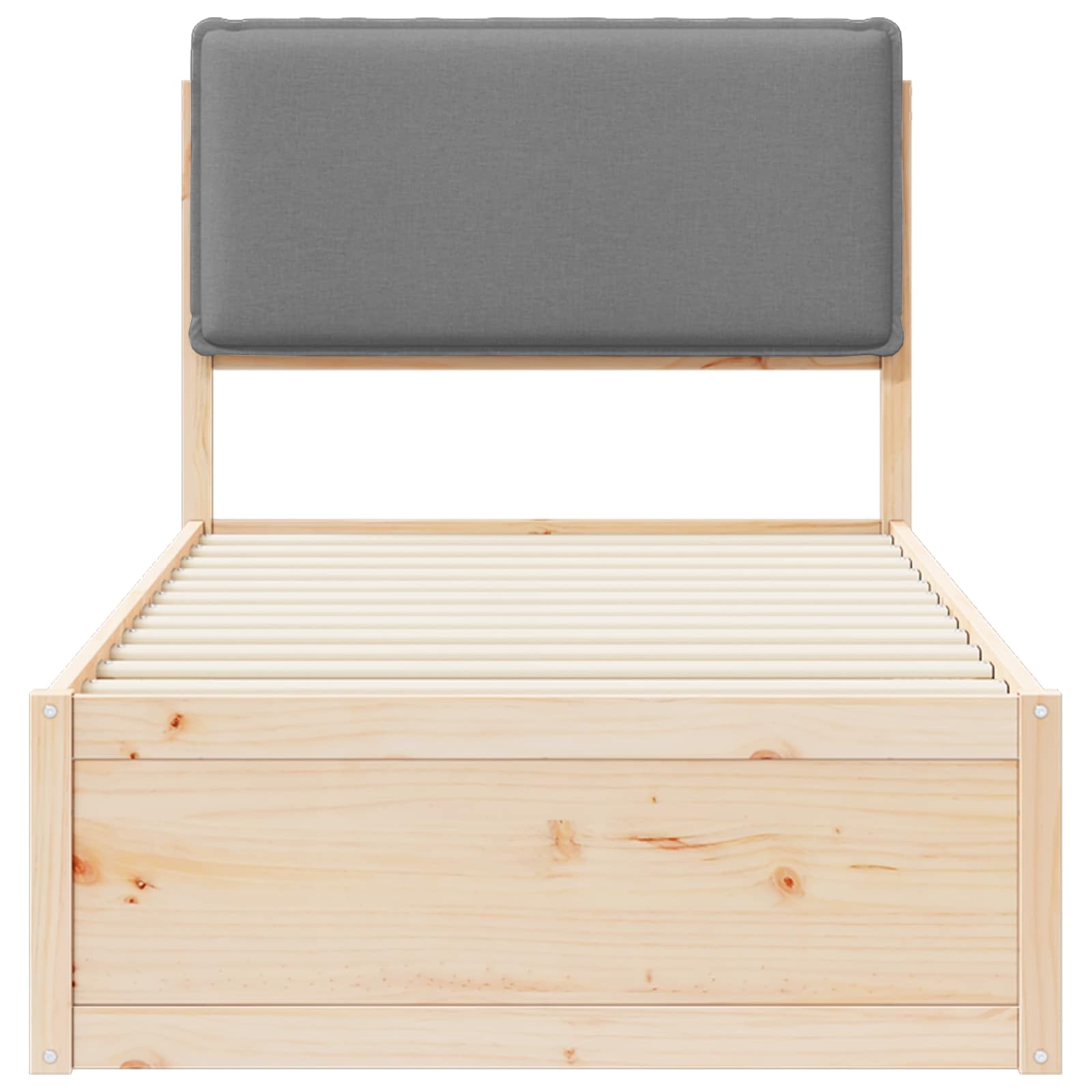 Dieses schick gestaltete Bettgestell mit gepolstertem Kopfteil bringt moderne Einfachheit in dein Schlafzimmer. Die klaren Linien und das minimalistische Design werten jede Dekoration auf. Das robuste Kiefernholz sorgt für Langlebigkeit und sorgt für eine angenehme, natürliche Atmosphäre. Es bietet festen Halt mit der slatted Plattform, was bedeutet, dass du keine Boxspringmatratze brauchst, was dir einen besseren Schlafkomfort bringt. Egal, ob du ein minimalistisches Refugium oder ein modernes Highlight möchtest, dieses Bett erfüllt beides. Qualitätsbau: Aus massivem Kiefernholz, stabil und langlebig. Die natürliche Holzmaserung bringt organische Eleganz und sorgt dafür, dass das Bett jahrelang stabil bleibt. Eine top Investition für dein Zuhause. Inklusive Kopfteil: Gepolstert mit weichem Schaumstoff und einer bequemen Oberfläche, ideal zum Entspannen und Lesen. Abnehmbare, waschbare Bezüge machen die Pflege leicht und halten es frisch. Funktionales und einfaches Setup: Kein Bedarf an Boxspringmatratze, was alles einfacher macht und Unordnung reduziert. Plattformlatten geben gleichmäßige Matratzenunterstützung für besseren Schlaf. Montage ist kinderleicht und braucht nur zwei Leute und einen Schraubendreher. Raumoptimierendes Design: Perfekt für moderne Schlafzimmer, passt gut in kleine Apartments und große Häuser. Die schlichte Form lässt sich problemlos in verschiedene Einrichtungsstile integrieren. Einfache Pflege: Halte es schön, indem du einfach mit einem feuchten Tuch drüberwischst. Die robuste Oberfläche hält täglichem Gebrauch stand und sieht dabei toll aus.
