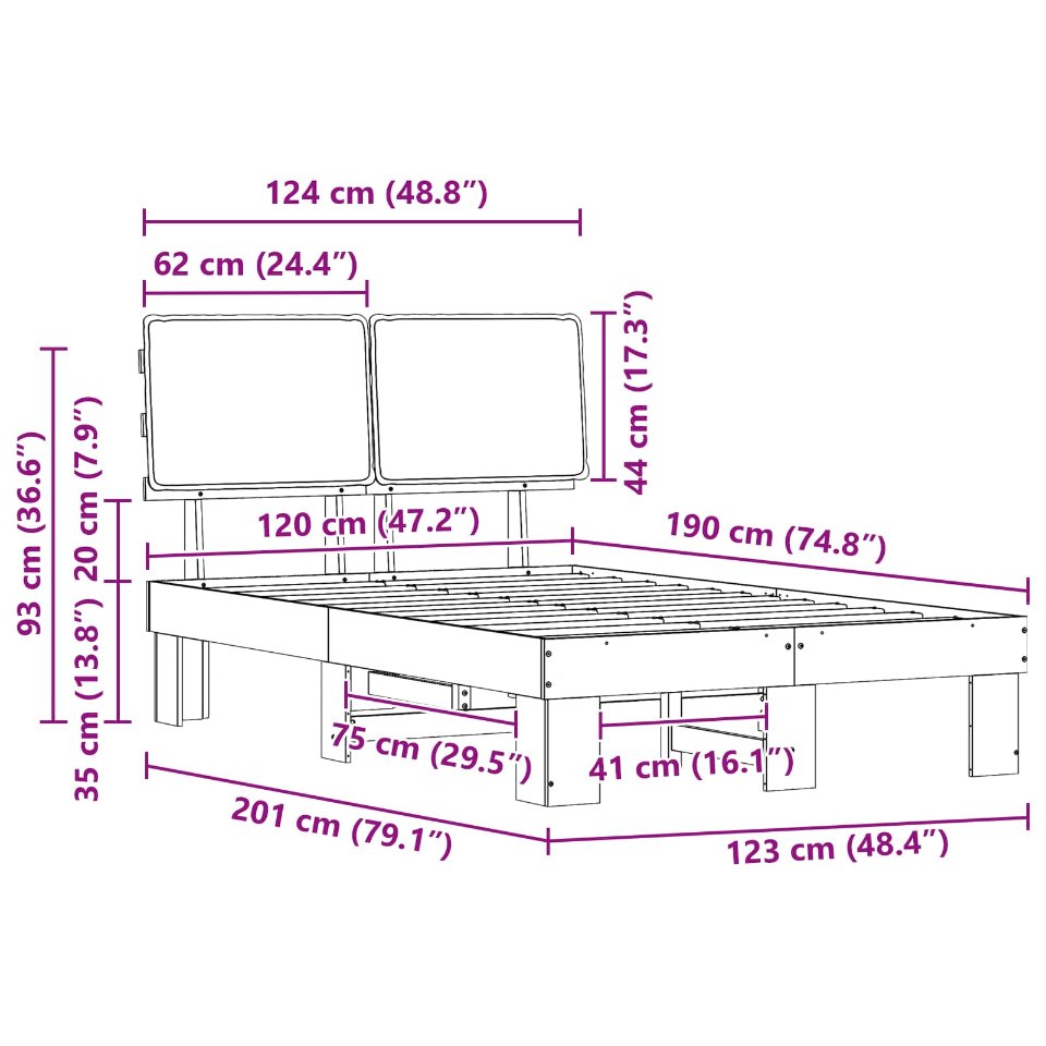 - Matratzengröße: Kurzes Kleines Doppelbett (120 cm x 190 cm oder 47" x 75")