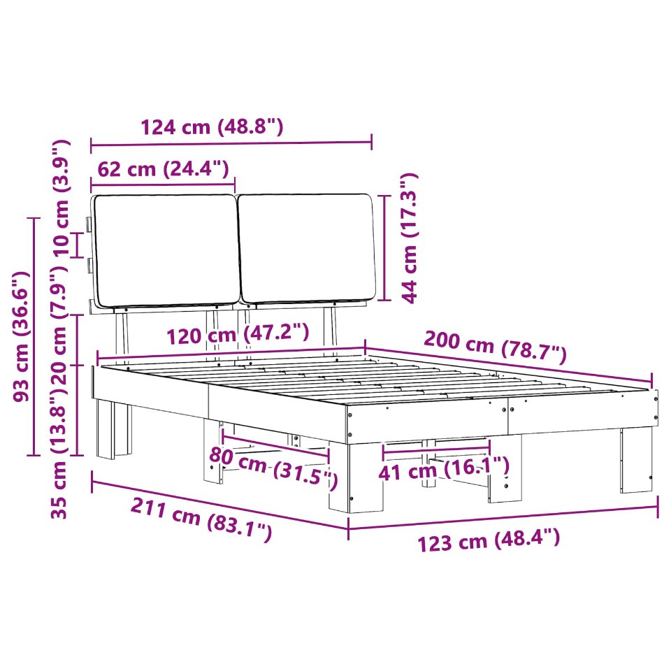 - Matratzengröße: Kleines Doppelbett (120 cm x 200 cm oder 47" x 79")
