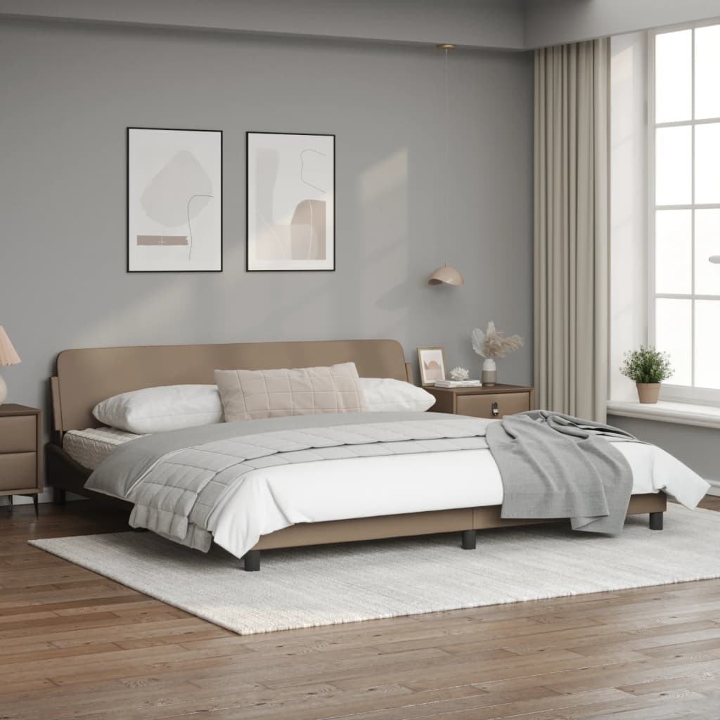 Mit diesem Bettgestell mit Kopfteil genießt du einen besseren, erholsameren Schlaf! Es ist eine angenehme Bereicherung für jedes Schlafzimmer. Langlebiges Kunstleder: Hochwertiges Kunstleder ist ein äußerst langlebiges Material. Es ist schmutzabweisend und lässt sich mit einem feuchten Tuch einfach reinigen. Durch die glatte Oberfläche weist es die Schönheit von Echtleder und einen luxuriösen Look auf.Stützbeine: Das Bett wird von stabilen Beinen getragen, die seine Stabilität, Sicherheit und Festigkeit gewährleisten.Sperrholzlatten: Die Sperrholzlatten sorgen für eine gute Gewichtsverteilung und auch dafür, dass die Matratze bei jeder Bewegung deines Körpers während des Schlafes an Ort und Stelle bleibt.Hervorragende Unterstützung: Das Bett-Kopfteil bietet dir eine hervorragende Unterstützung, während du im Bett sitzt, um zu lesen oder fernzusehen.Wellenförmiges Seitendesign: Das stilvolle und raffinierte Design in Wellenform verleiht deiner Einrichtung eine moderne und elegante Note und macht das Bettgestell zum Mittelpunkt deines Schlafzimmers. Gut zu wissen:Bei diesem Bett ist keine Matratze im Lieferumfang enthalten. Wir bieten jedoch eine große Auswahl an Matratzen an. Du kannst in unserem Shop nach einer passenden Matratze suchen.