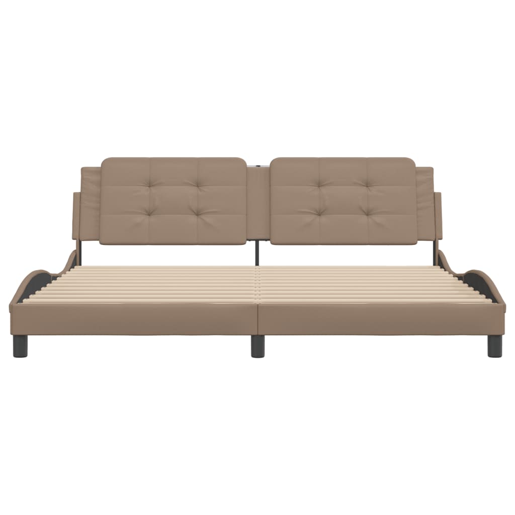 Mit diesem Bettgestell mit Kopfteil genießt du einen besseren, erholsameren Schlaf! Es ist eine angenehme Bereicherung für jedes Schlafzimmer. Langlebiges Kunstleder: Hochwertiges Kunstleder ist ein äußerst langlebiges Material. Es ist schmutzabweisend und lässt sich mit einem feuchten Tuch einfach reinigen. Durch die glatte Oberfläche weist es die Schönheit von Echtleder und einen luxuriösen Look auf.Sperrholzlatten: Die Sperrholzlatten sorgen für eine gute Gewichtsverteilung und auch dafür, dass die Matratze bei jeder Bewegung deines Körpers während des Schlafes an Ort und Stelle bleibt.Ausgezeichnete Unterstützung: Das Kopfteil-Kissen ist mit Schaumstoff gefüllt und fühlt sich daher extra weich und komfortabel an. Es bietet eine ausgezeichnete Rückenunterstützung beim Sitzen im Bett oder Fernsehen.Praktisches Design: Das Kopfteil-Kissen verfügt über einen Reißverschluss und lässt sich dadurch einfach anbringen.Wellenförmiges Seitendesign: Das stilvolle und raffinierte Design in Wellenform verleiht deiner Einrichtung eine moderne und elegante Note und macht das Bettgestell zum Mittelpunkt deines Schlafzimmers. Gut zu wissen:Bei diesem Bett ist keine Matratze im Lieferumfang enthalten. Wir bieten jedoch eine große Auswahl an Matratzen an. Du kannst in unserem Shop nach einer passenden Matratze suchen.