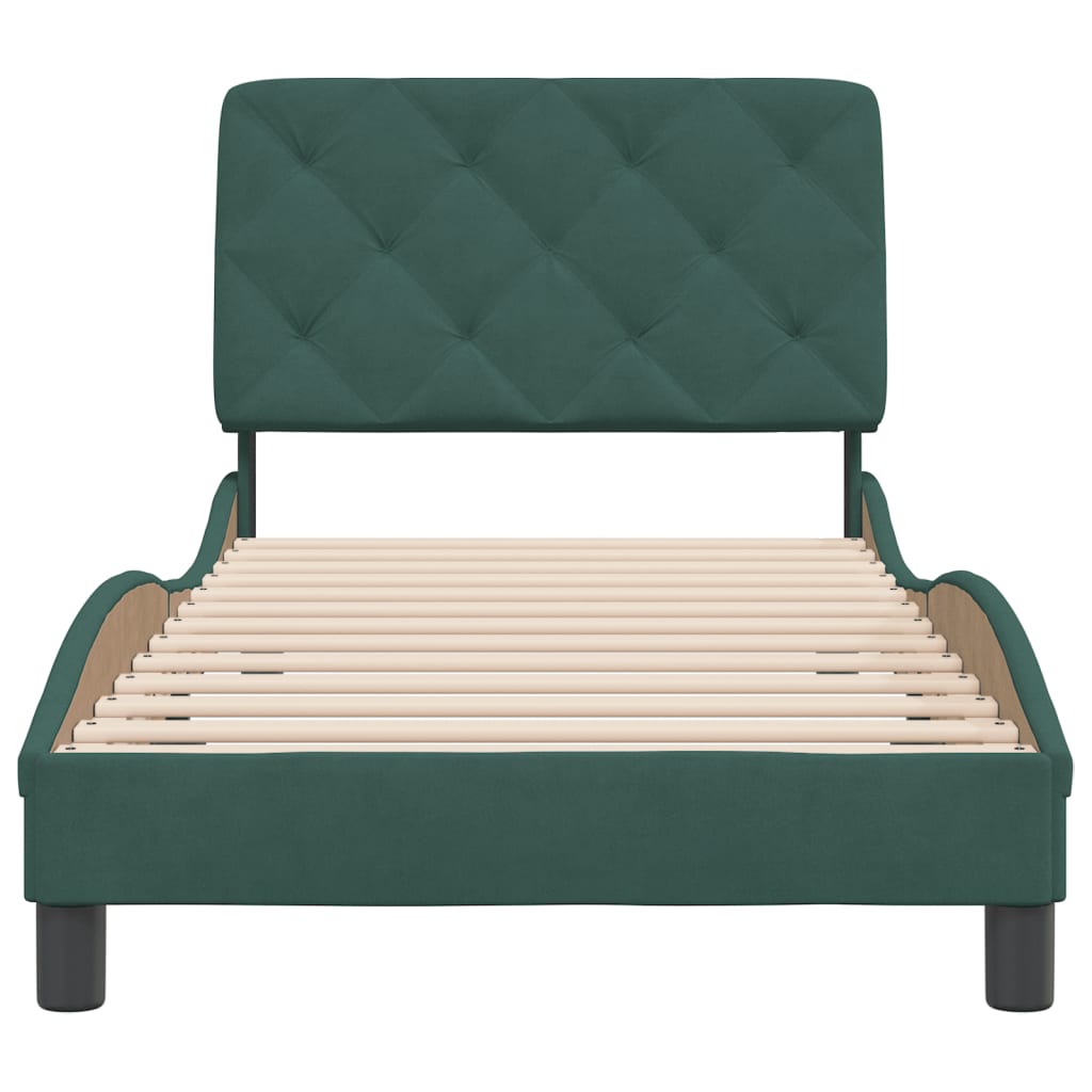 Mit diesem Bettgestell mit Kopfteil genießt du einen besseren, erholsameren Schlaf! Es ist eine angenehme Bereicherung für jedes Schlafzimmer. Weicher Samt: Samt ist ein weicher und bequemer Stoff, der sich angenehm auf der Haut anfühlt.Sperrholzlatten: Die Sperrholzlatten sorgen für eine gute Gewichtsverteilung und auch dafür, dass die Matratze bei jeder Bewegung deines Körpers während des Schlafes an Ort und Stelle bleibt.Ausgezeichnete Unterstützung: Das Kopfteil-Kissen ist mit Schaumstoff gefüllt und fühlt sich daher extra weich und komfortabel an. Es bietet eine ausgezeichnete Rückenunterstützung beim Sitzen im Bett oder Fernsehen.Praktisches Design: Das Kopfteil mit Kissen hat einen Reißverschluss für eine einfache Montage. Die Klettverschlüsse auf der Rückseite können zur Befestigung von LED-Leisten verwendet werden.Wellenförmiges Seitendesign: Das stilvolle und raffinierte Design in Wellenform verleiht deiner Einrichtung eine moderne und elegante Note und macht das Bettgestell zum Mittelpunkt deines Schlafzimmers. Gut zu wissen:Bei diesem Bett ist keine Matratze im Lieferumfang enthalten. Wir bieten jedoch eine große Auswahl an Matratzen an. Du kannst in unserem Shop nach einer passenden Matratze suchen.