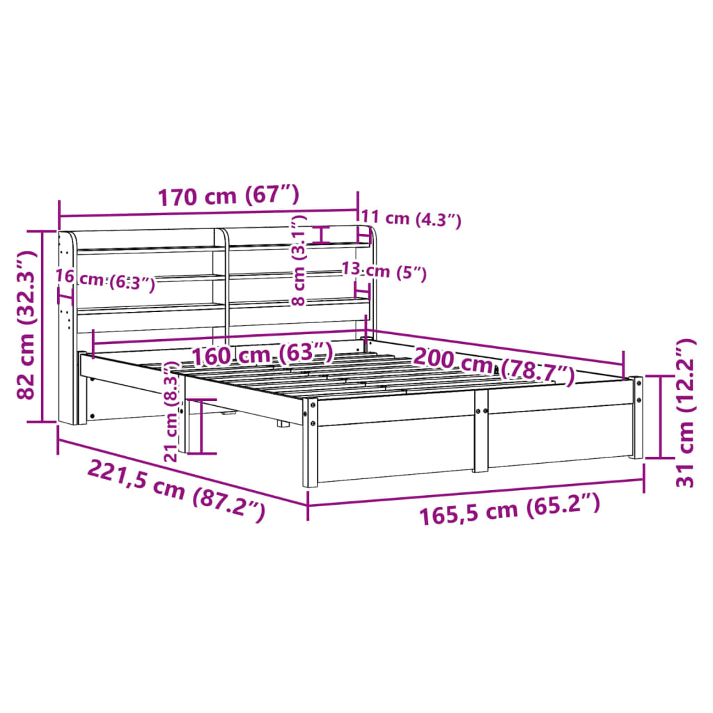 Genießen Sie einen erholsamen Schlaf in diesem Holzbett! Es wird eine praktische und dekorative Ergänzung zu Ihrem Interieur sein. Massives Kiefernholz: Massives Kiefernholz ist ein wunderschönes Naturmaterial. Kiefernholz weist eine gerade Maserung auf und die Aststellen verleihen dem Material seine charakteristische, rustikale Optik.Stabil: Der Holzrahmen sorgt für Robustheit und Stabilität. Robuste Latten: Die Sperrholzlatten sorgen für eine gute Gewichtsverteilung und auch dafür, dass die Matratze bei jeder Bewegung Ihres Körpers während des Schlafes an Ort und Stelle bleibt.Vielseitiges Kopfteil: Dieses Bettgestell ist mit einem Kopfteil versehen, das als komfortable Rückenstütze beim Lesen oder Fernsehen und gleichzeitig als dekoratives Element dient.Reichlich Stauraum: Dieses elegante Kopfteil verfügt über zwei praktische Ablagen, die reichlich Stauraum bieten, um wichtige Sachen nachts griffbereit zu halten. Gut zu wissen:Bei diesem Bett ist keine Matratze im Lieferumfang enthalten. Wir bieten jedoch eine große Auswahl an Matratzen an. Du kannst in unserem Shop nach einer passenden Matratze suchen.