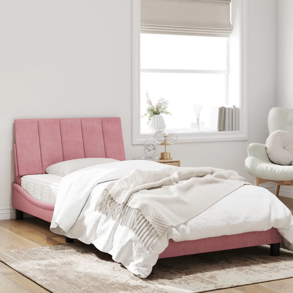 Mit diesem Bettgestell mit Kopfteil genießt du einen besseren, erholsameren Schlaf! Es ist eine angenehme Bereicherung für jedes Schlafzimmer. Weicher Samt: Samt ist ein weicher und bequemer Stoff, der sich angenehm auf der Haut anfühlt.Sperrholzlatten: Die Sperrholzlatten sorgen für eine gute Gewichtsverteilung und auch dafür, dass die Matratze bei jeder Bewegung deines Körpers während des Schlafes an Ort und Stelle bleibt.Ausgezeichnete Unterstützung: Das Kopfteil-Kissen ist mit Schaumstoff gefüllt und fühlt sich daher extra weich und komfortabel an. Es bietet eine ausgezeichnete Rückenunterstützung beim Sitzen im Bett oder Fernsehen.Praktisches Design: Das Kopfteil mit Kissen hat einen Reißverschluss für eine einfache Montage. Die Klettverschlüsse auf der Rückseite können zur Befestigung von LED-Leisten verwendet werden.Wellenförmiges Seitendesign: Das stilvolle und raffinierte Design in Wellenform verleiht deiner Einrichtung eine moderne und elegante Note und macht das Bettgestell zum Mittelpunkt deines Schlafzimmers. Gut zu wissen:Bei diesem Bett ist keine Matratze im Lieferumfang enthalten. Wir bieten jedoch eine große Auswahl an Matratzen an. Du kannst in unserem Shop nach einer passenden Matratze suchen.