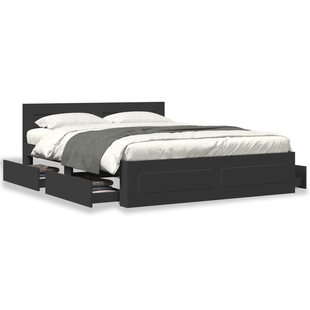 Mit diesem Bett wirst du einen besseren, erholsameren Schlaf genießen! Er ist eine einladende Ergänzung für jedes Schlafzimmer. Langlebiges Material: Dieses Bettgestell ist aus Holzwerkstoff gefertigt. Holzwerkstoff ist ein Material von außergewöhnlicher Qualität mit glatter Oberfläche, das sich durch Festigkeit, Stabilität und Feuchtigkeitsbeständigkeit auszeichnet.Lattenrost für optimale Unterstützung: Der Bettrahmen ist mit einem Lattenrost ausgestattet, der deine Matratze stützt und atmungsaktiv hält.Stauraum: Dieses Bettgestell verfügt über Schubladen, in denen du Bettzeug, Zeitschriften, Bücher, Spielzeuge und andere Kleinigkeiten gut organisiert aufbewahren kannst.Ausgezeichnete Unterstützung: Das Kopfteil bietet eine hervorragende Rückenunterstützung beim Lesen oder Fernsehen. Gut zu wissen:Bei diesem Bett ist keine Matratze im Lieferumfang enthalten. Wir bieten jedoch eine große Auswahl an Matratzen an. Du kannst in unserem Shop nach einer passenden Matratze suchen.