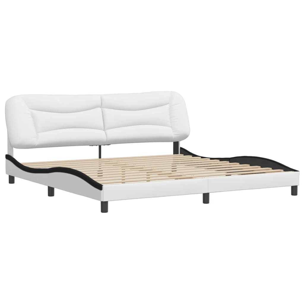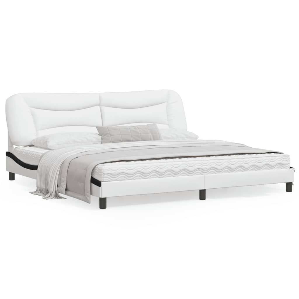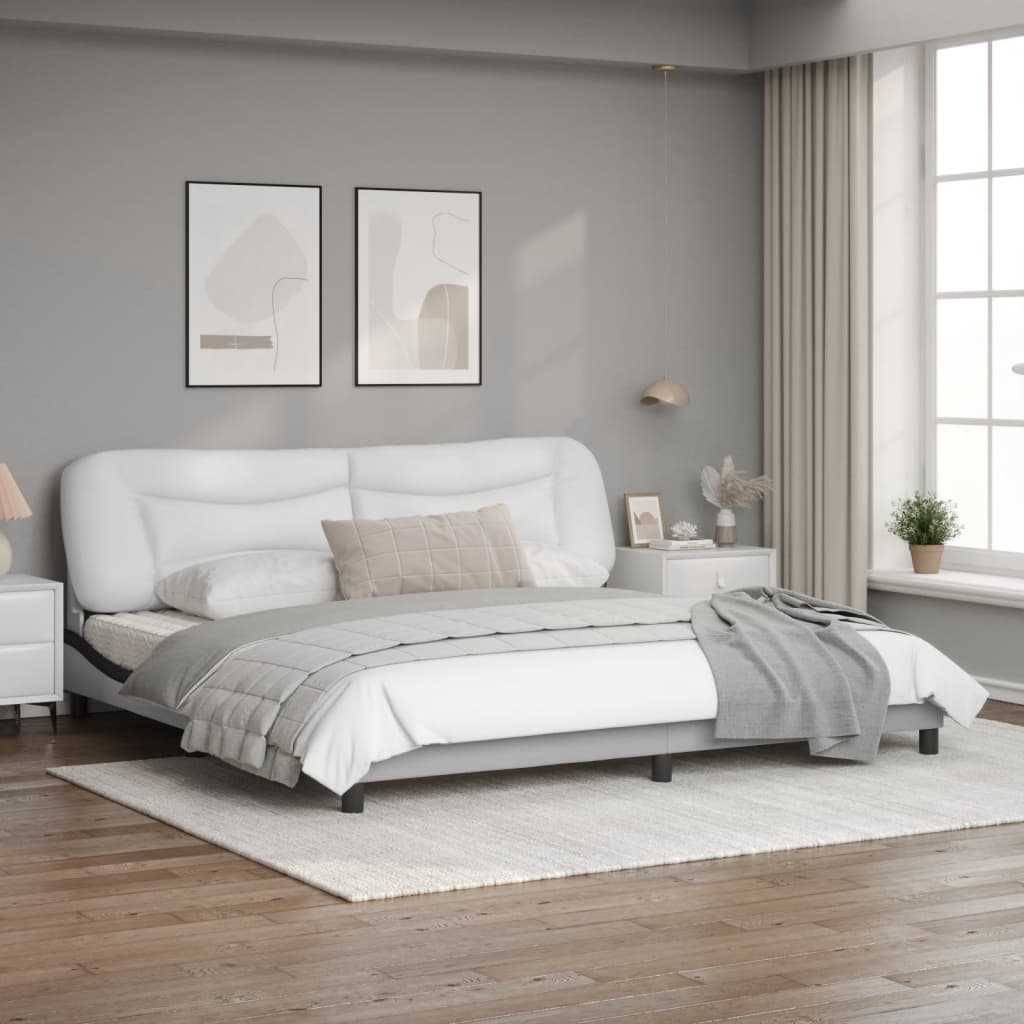 Mit diesem Bettgestell mit Kopfteil genießt du einen besseren, erholsameren Schlaf! Es ist eine angenehme Bereicherung für jedes Schlafzimmer. Langlebiges Kunstleder: Hochwertiges Kunstleder ist ein äußerst langlebiges Material. Es ist schmutzabweisend und lässt sich mit einem feuchten Tuch einfach reinigen. Durch die glatte Oberfläche weist es die Schönheit von Echtleder und einen luxuriösen Look auf.Sperrholzlatten: Die Sperrholzlatten sorgen für eine gute Gewichtsverteilung und auch dafür, dass die Matratze bei jeder Bewegung deines Körpers während des Schlafes an Ort und Stelle bleibt.Exzellenter Halt: Das Kopfteil Kissen ist mit PP-Fasern für ultraweichen und optimalen Komfort gefüllt und bietet dir eine hervorragende Rückenlehne, während du im Bett sitzt, liest oder fernsiehst.Wellenförmiges Seitendesign: Das stilvolle und raffinierte Design in Wellenform verleiht deiner Einrichtung eine moderne und elegante Note und macht das Bettgestell zum Mittelpunkt deines Schlafzimmers. Gut zu wissen:Bei diesem Bett ist keine Matratze im Lieferumfang enthalten. Wir bieten jedoch eine große Auswahl an Matratzen an. Du kannst in unserem Shop nach einer passenden Matratze suchen.