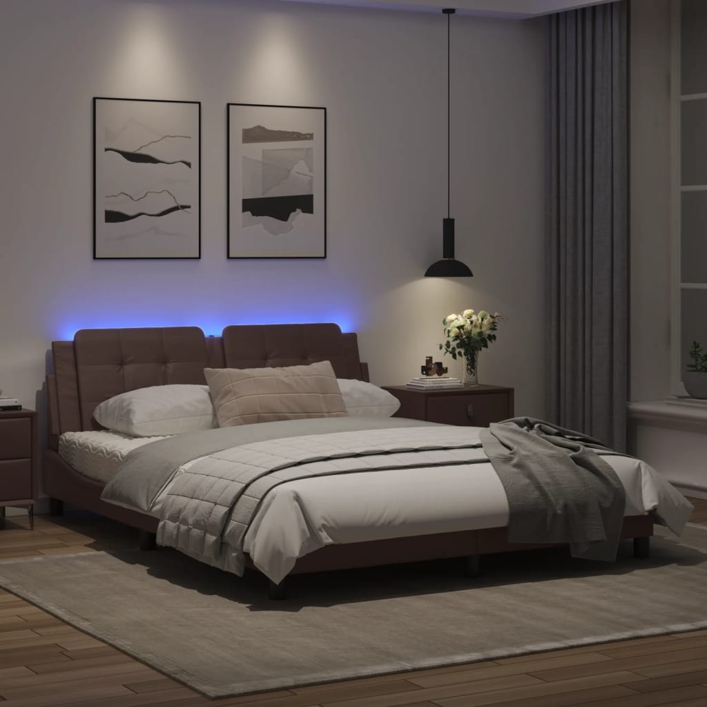 Dieses Bettgestell mit LED-Leuchten sorgt für eine erholsame Nachtruhe! Es stellt eine einladende Ergänzung zu jedem Schlafzimmer dar. Langlebiges Kunstleder: Hochwertiges Kunstleder ist ein äußerst langlebiges Material. Es ist schmutzabweisend und lässt sich mit einem feuchten Tuch einfach reinigen. Durch die glatte Oberfläche weist es die Schönheit von Echtleder und einen luxuriösen Look auf.Sperrholzlatten: Die Sperrholzlatten sorgen für eine gute Gewichtsverteilung und auch dafür, dass die Matratze bei jeder Bewegung deines Körpers während des Schlafes an Ort und Stelle bleibt.Hervorragende Unterstützung: Das Bett-Kopfteil bietet dir eine hervorragende Unterstützung, während du im Bett sitzt, um zu lesen oder fernzusehen.Bunter LED-Streifen: Die farbenfrohen LED-Leuchten bringen das Schlafzimmer zum Leuchten! Die Klettverschlüsse auf der Rückseite des Kopfteils können zur Befestigung der LED-Leuchten verwendet werden.Wellenförmiges Seitendesign: Das stilvolle und raffinierte Design in Wellenform verleiht deiner Einrichtung eine moderne und elegante Note und macht das Bettgestell zum Mittelpunkt deines Schlafzimmers. Gut zu wissen:Bei diesem Bett ist keine Matratze im Lieferumfang enthalten. Wir bieten jedoch eine große Auswahl an Matratzen an. Du kannst in unserem Shop nach einer passenden Matratze suchen.Das Produkt verfügt über einen USB-Anschluss, für den eine zertifizierte 5V-USB-Stromquelle erforderlich ist (nicht im Lieferumfang enthalten).