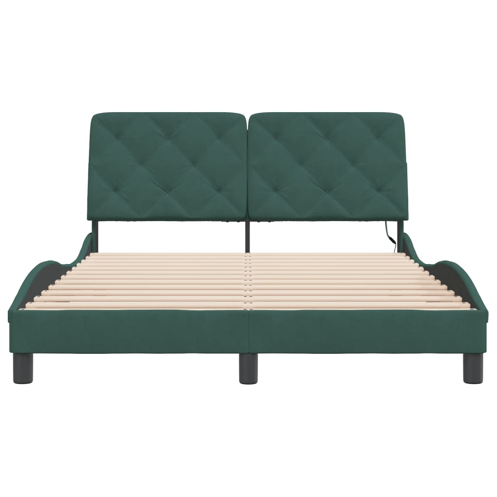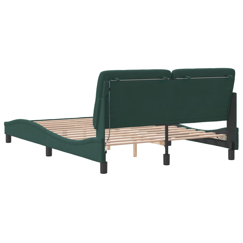 Dieses Bettgestell mit LED-Leuchten sorgt für eine erholsame Nachtruhe! Es stellt eine einladende Ergänzung zu jedem Schlafzimmer dar. Weicher Samt: Samt ist ein weicher und bequemer Stoff, der sich angenehm auf der Haut anfühlt. Sperrholzlatten: Die Sperrholzlatten sorgen für eine gute Gewichtsverteilung und auch dafür, dass die Matratze bei jeder Bewegung deines Körpers während des Schlafes an Ort und Stelle bleibt. Ausgezeichnete Unterstützung: Das Kopfteil-Kissen ist mit Schaumstoff gefüllt und fühlt sich daher extra weich und komfortabel an. Es bietet eine ausgezeichnete Rückenunterstützung beim Sitzen im Bett oder Fernsehen. Bunter LED-Streifen: Die farbenfrohen LED-Leuchten bringen das Schlafzimmer zum Leuchten! Die Klettverschlüsse auf der Rückseite des Kopfteils können zur Befestigung der LED-Leuchten verwendet werden. Wellenförmiges Seitendesign: Das stilvolle und raffinierte Design in Wellenform verleiht deiner Einrichtung eine moderne und elegante Note und macht das Bettgestell zum Mittelpunkt deines Schlafzimmers. Gut zu wissen:Bei diesem Bett ist keine Matratze im Lieferumfang enthalten. Wir bieten jedoch eine große Auswahl an Matratzen an. Du kannst in unserem Shop nach einer passenden Matratze suchen.Das Produkt verfügt über einen USB-Anschluss, für den eine zertifizierte 5V-USB-Stromquelle erforderlich ist (nicht im Lieferumfang enthalten).