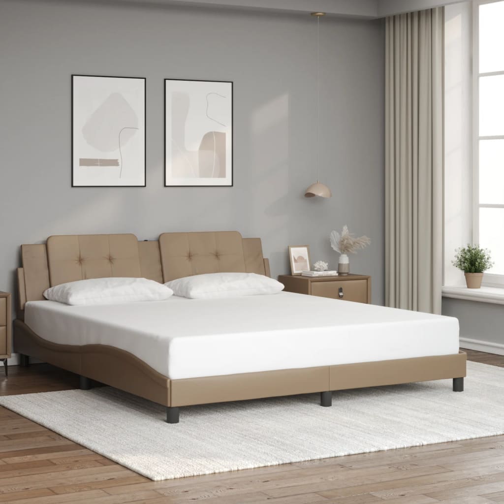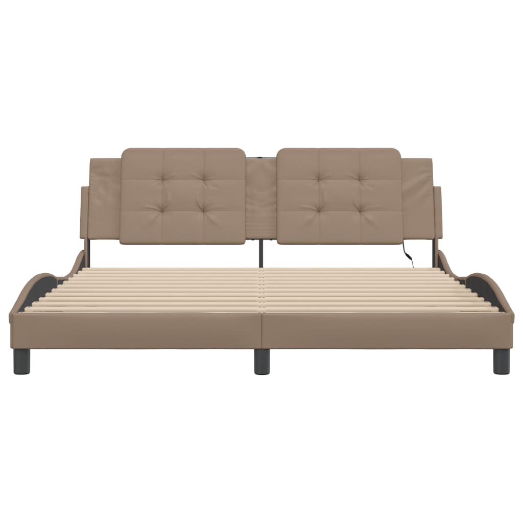 Dieses Bettgestell mit LED-Leuchten sorgt für eine erholsame Nachtruhe! Es stellt eine einladende Ergänzung zu jedem Schlafzimmer dar. Langlebiges Kunstleder: Hochwertiges Kunstleder ist ein äußerst langlebiges Material. Es ist schmutzabweisend und lässt sich mit einem feuchten Tuch einfach reinigen. Durch die glatte Oberfläche weist es die Schönheit von Echtleder und einen luxuriösen Look auf.Sperrholzlatten: Die Sperrholzlatten sorgen für eine gute Gewichtsverteilung und auch dafür, dass die Matratze bei jeder Bewegung deines Körpers während des Schlafes an Ort und Stelle bleibt.Hervorragende Unterstützung: Das Bett-Kopfteil bietet dir eine hervorragende Unterstützung, während du im Bett sitzt, um zu lesen oder fernzusehen.Bunter LED-Streifen: Die farbenfrohen LED-Leuchten bringen das Schlafzimmer zum Leuchten! Die Klettverschlüsse auf der Rückseite des Kopfteils können zur Befestigung der LED-Leuchten verwendet werden.Wellenförmiges Seitendesign: Das stilvolle und raffinierte Design in Wellenform verleiht deiner Einrichtung eine moderne und elegante Note und macht das Bettgestell zum Mittelpunkt deines Schlafzimmers. Gut zu wissen:Bei diesem Bett ist keine Matratze im Lieferumfang enthalten. Wir bieten jedoch eine große Auswahl an Matratzen an. Du kannst in unserem Shop nach einer passenden Matratze suchen.Das Produkt verfügt über einen USB-Anschluss, für den eine zertifizierte 5V-USB-Stromquelle erforderlich ist (nicht im Lieferumfang enthalten).