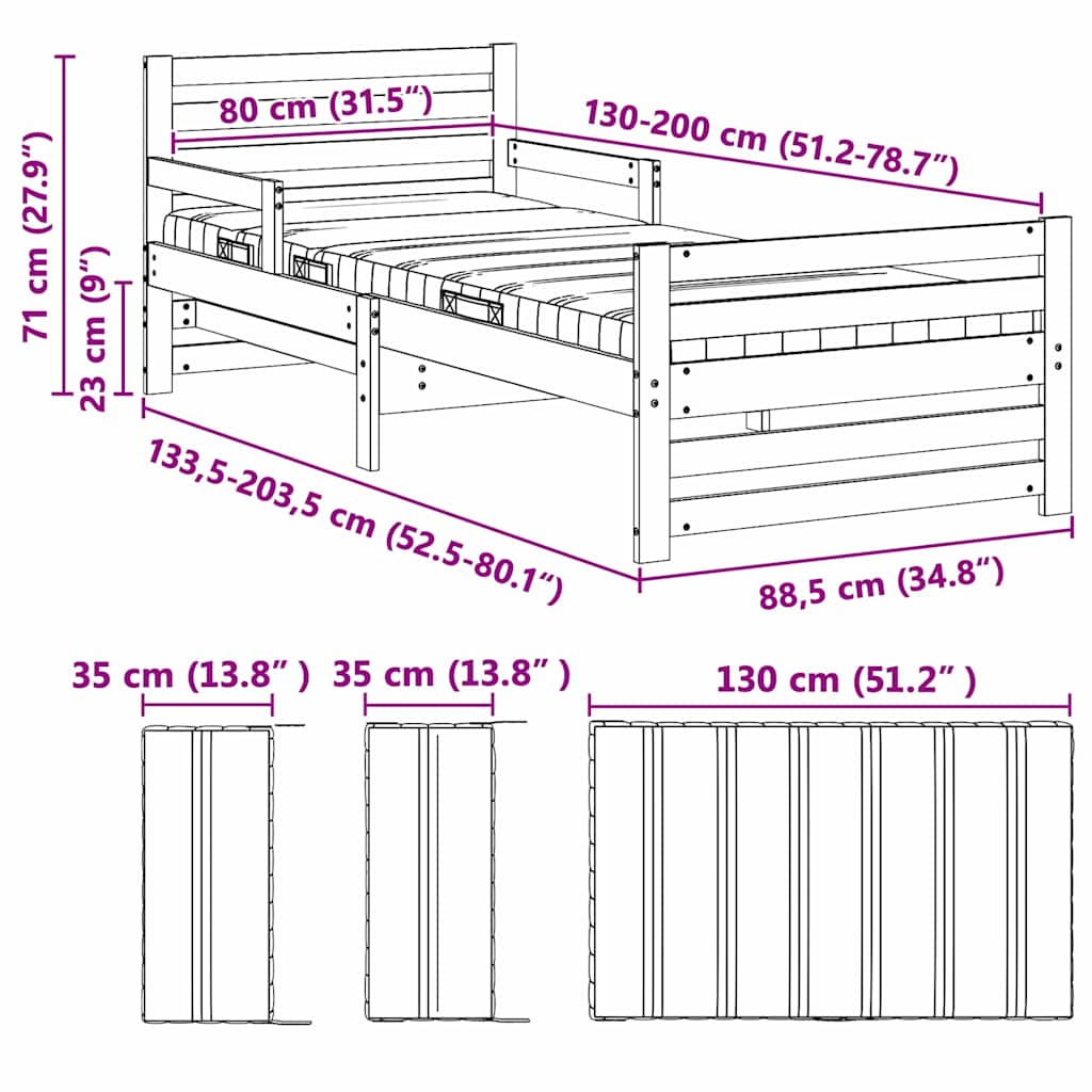 - Matratzengröße: Schmales einzelbett (80 cm x 200 cm oder 31" x 79")