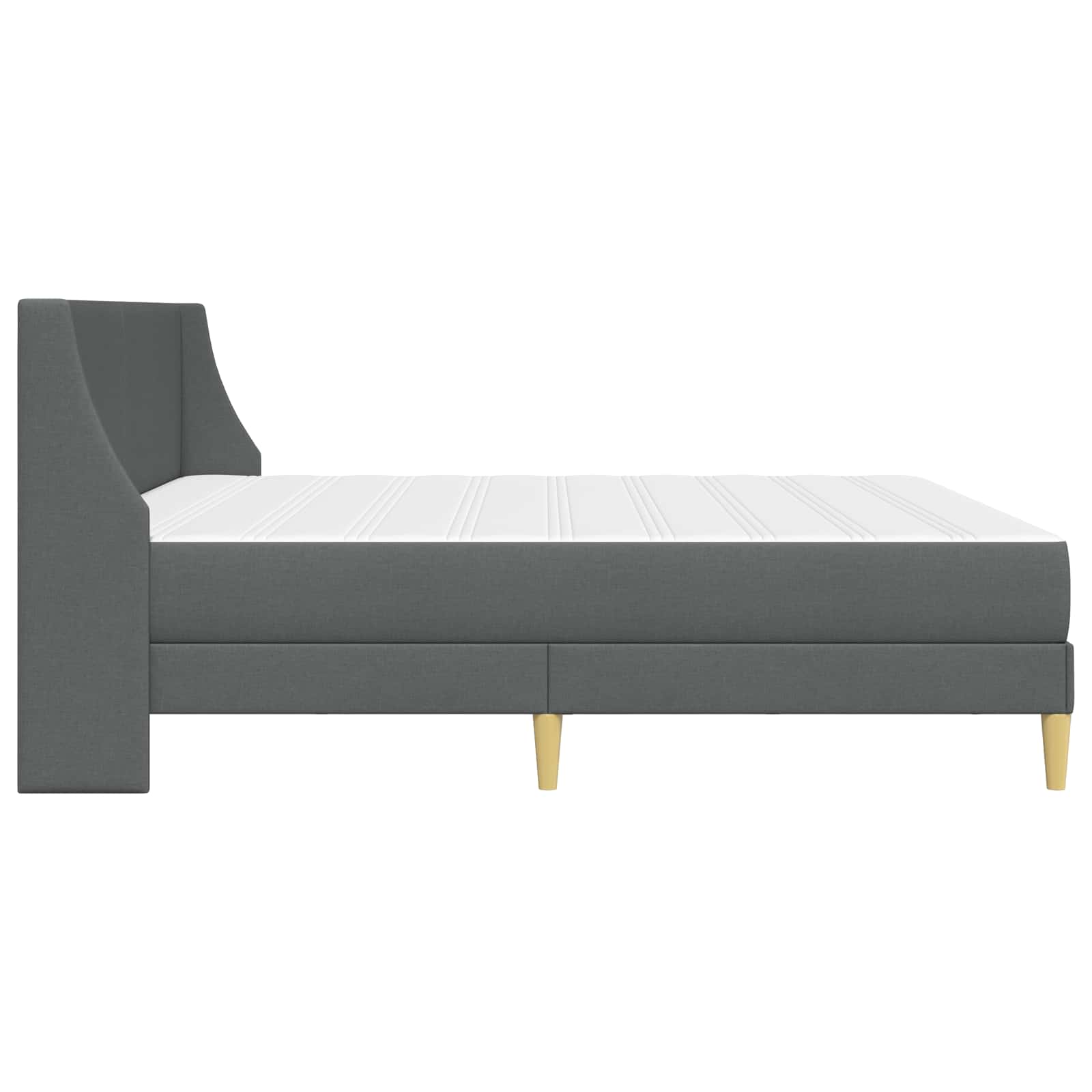 Dieser schicke Bettrahmen mit Matratze ist die perfekte Mischung aus modernem Design und praktischem Komfort und bringt einen Hauch zeitgenössischer Schönheit in dein Schlafzimmer. Die stabile Bauweise sorgt für Langlebigkeit und macht das Doppelbett zum Favoriten von Komfortliebhabern. Es hat ein schick gepolstertes Kopfteil und atmungsaktive Materialien, die für entspannende Nächte sorgen. Es passt super in unterschiedliche Raumkonzepte und wird zum einladenden Mittelpunkt, das seine Eleganz und Zweckmäßigkeit unterstreicht. Robuste Lattenkonstruktion Ein stabiler Lattenrost sorgt für tolle Unterstützung deiner Matratze und verbessert die Belüftung sowie die Lebensdauer der Matratze. Gleichmäßige Lattenverteilung bietet dir eine zuverlässige Schlafbasis. Bequemes Kopfteil Das gepolsterte Kopfteil sorgt für kuscheligen Halt beim Lesen oder Fernsehen. In einem sanften Grau hält es sich gut in verschiedenen Schlafzimmer-Einrichtungen und gibt deinem Raum einen modernen Akzent. Praktischer Stauraum unter dem Bett Nutze den Platz unter dem Bett clever – perfekt für Aufbewahrungsboxen oder Schubladen. Durchdacht gestaltet, hilft dieses Feature, die Ordnung zu halten, indem es oft übersehene Bereiche nutzt. Robuste Konstruktion Die Kombination aus Birkensperrholzrahmen und Polyesterbezug sorgt für eine lange Nutzungsdauer. Stabil und unterstützt durch konisch geformte Kunststoffbeine, bietet es Stabilität für deinen Schlaf. Einfache Montage Dieser Bettrahmen kommt mit einer klaren Anleitung für einen stressfreien Aufbau. Einmal aufgestellt, brauchst du nur Alltagswerkzeuge wie einen Schraubendreher und eine Bohrmaschine – das macht ihn zu einer mühelosen Ergänzung für dein Zuhause.