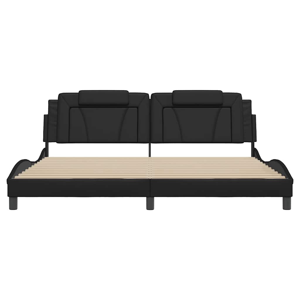 Mit diesem Bettgestell mit Kopfteil genießt du einen besseren, erholsameren Schlaf! Es ist eine angenehme Bereicherung für jedes Schlafzimmer. Langlebiges Kunstleder: Hochwertiges Kunstleder ist ein äußerst langlebiges Material. Es ist schmutzabweisend und lässt sich mit einem feuchten Tuch einfach reinigen. Durch die glatte Oberfläche weist es die Schönheit von Echtleder und einen luxuriösen Look auf.Sperrholzlatten: Die Sperrholzlatten sorgen für eine gute Gewichtsverteilung und auch dafür, dass die Matratze bei jeder Bewegung deines Körpers während des Schlafes an Ort und Stelle bleibt.Ausgezeichnete Unterstützung: Das Kopfteil-Kissen ist mit Schaumstoff gefüllt und fühlt sich daher extra weich und komfortabel an. Es bietet eine ausgezeichnete Rückenunterstützung beim Sitzen im Bett oder Fernsehen.Wellenförmiges Seitendesign: Das stilvolle und raffinierte Design in Wellenform verleiht deiner Einrichtung eine moderne und elegante Note und macht das Bettgestell zum Mittelpunkt deines Schlafzimmers. Gut zu wissen:Bei diesem Bett ist keine Matratze im Lieferumfang enthalten. Wir bieten jedoch eine große Auswahl an Matratzen an. Du kannst in unserem Shop nach einer passenden Matratze suchen.