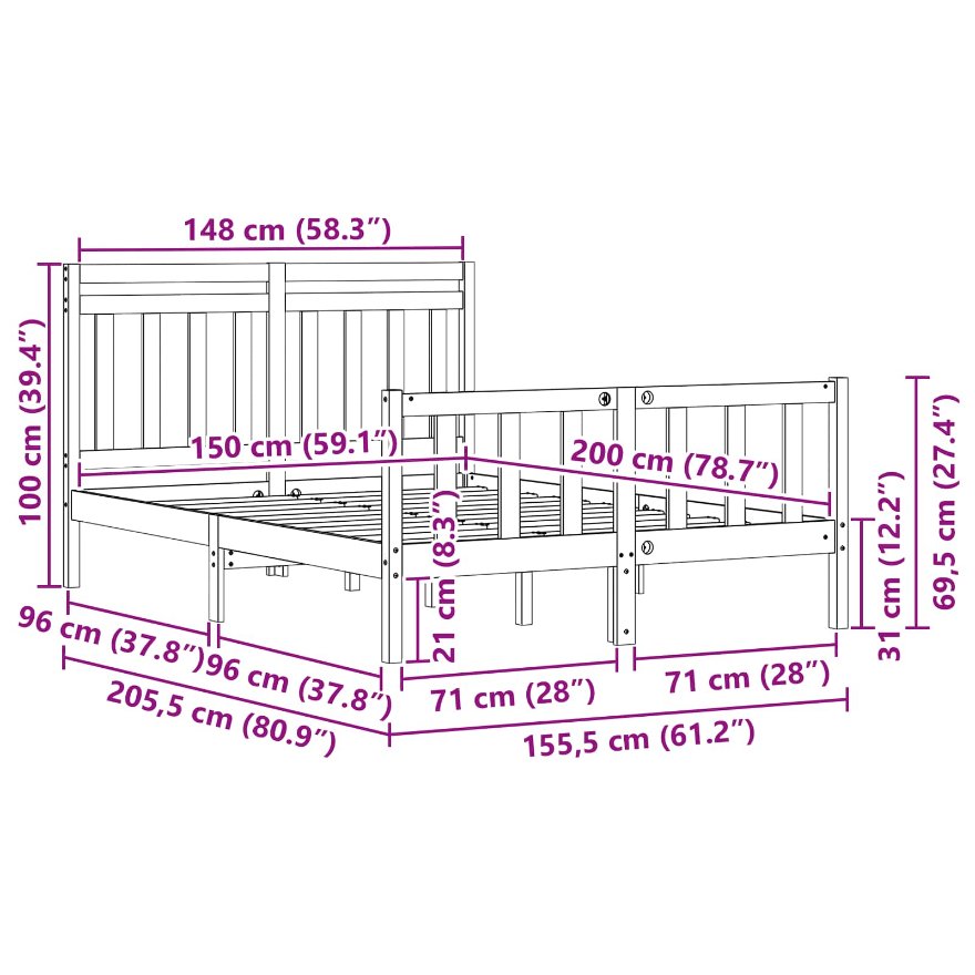 - Matratzengröße: Britisches Kingsize-Bett (150 cm x 200 cm oder 60" x 78")
