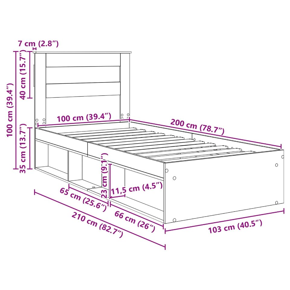 - Matratzengröße: Breites Einzelbett (100 cm x 200 cm oder 39" x 79")