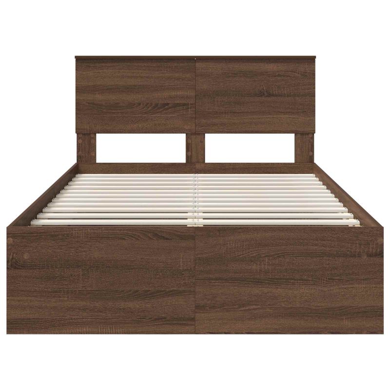 Dieses Bettgestell hat ein schlankes und modernes Design und bringt eine subtile Eleganz in jedes Schlafzimmer. Es hat klare Linien und kaum Verzierungen, damit es sich gut in verschiedene Einrichtungsstile einfügt. Die robuste Konstruktion aus hochwertigem Holzwerkstoff zieht die Blicke auf sich und lädt zur Entspannung ein. Es ist eine tolle Wahl für alle, die ein funktionales, aber zugleich stylisches Zentrum suchen, das die Balance zwischen Einfachheit und Praktikabilität hält. Rahmen aus Holzwerkstoff Dieses Bettgestell bietet durch hochwertigen Holzwerkstoff zuverlässige Unterstützung und sieht dabei gut aus. Das Material sorgt für Langlebigkeit und bietet eine stabile Basis fürs Schlafen. Komfortables Kopfteil Der Rahmen hat ein Kopfteil aus Holzwerkstoff, das die Optik des Bettes aufwertet und gleichzeitig bequemen Halt beim Sitzen gibt. Es ist stilvoll und passt zu modernen Geschmäckern. Fester Lattenrost Dieser Lattenrost sorgt für eine feste Liegefläche, was ideal ist, wenn du eine stabile Unterstützung möchtest. Die Robustheit wird durch Kosteneffizienz und Strukturfestigkeit ergänzt. Moderner Stil Das Design überzeugt durch klare Linien, die eine ordentliche Umgebung schaffen. Der moderne Stil passt super in minimalistische Räume, die sowohl Eleganz als auch Nützlichkeit schätzen. Bequeme Reinigung Die Pflege ist easy, da du das Bettgestell einfach mit einem feuchten Tuch abwischen kannst, um das Aussehen zu bewahren und die Reinigung einfach zu gestalten.