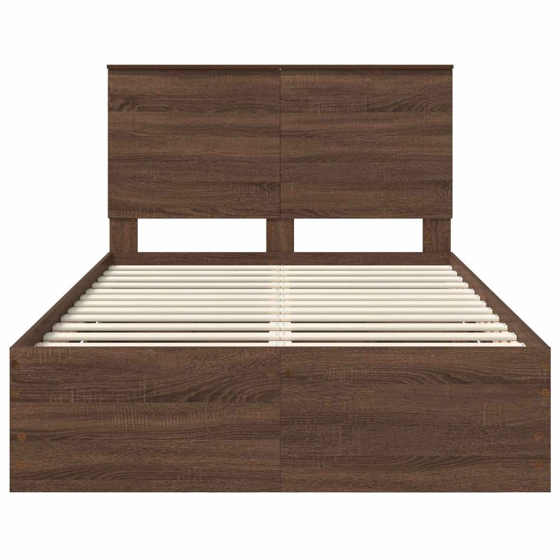 Dieses moderne Bettgestell ist eine schicke und stylische Ergänzung für jedes Schlafzimmer. Mit klaren, modernen Linien und aus strapazierfähigem, konstruiertem Holz gefertigt, vereint es Einfachheit und Eleganz für zeitgemäße Innenräume. Konstruierter Holzaufbau: Das Bettgestell ist komplett aus haltbarem, konstruiertem Holz gefertigt, was es sehr widerstandsfähig gegen Abnutzung macht. So behält es über die Jahre sein frisches Aussehen und bietet stabile Unterstützung für Ihre Matratze. Diskrete Stauraummöglichkeiten: Versteckte Schubladen bieten viel Platz für Ihre Sachen, ohne die klaren Linien des Bettes zu stören. Diese Fächer sind perfekt, um Ordnung zu halten und einen minimalistischen Look zu kreieren. Modernes, klares Design: Mit quadratischen Beinen und einem stabilen lattenförmigen Rahmen bringt das Bett eine moderne Note in Ihr Zimmer und harmoniert wunderbar mit verschiedenen Dekoren. Montage und Einrichtung: Dieses Bett kommt mit allem, was Sie für eine einfache Montage brauchen. Nur ein Schraubendreher ist nötig, und mit etwas Hilfe kann man schnell eine stabile Schlafbasis aufbauen. Einfache Pflegeempfehlungen: Das Bett lässt sich ganz einfach sauber halten. Ein feuchtes Tuch reicht, damit es frisch aussieht und in gutem Zustand bleibt.
