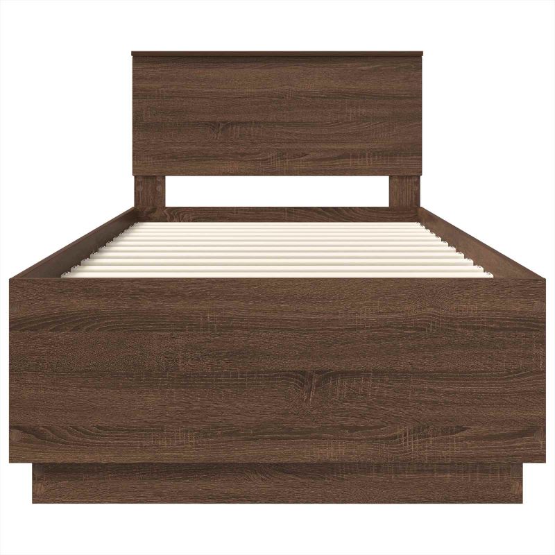 Dieser moderne Bettrahmen vereint zeitgenössisches Design mit Funktionalität und ist für Schlafzimmer gedacht. Seine rechteckige Form und die klaren Linien machen ihn zum Hingucker in jedem modernen Raum – perfekt für Minimalisten. Genieße den Komfort und Stil, die sich in einem höhenverstellbaren Design treffen. Design aus Holzwerkstoff Hergestellt aus hochwertigem Holzwerkstoff, bietet dieser Bettrahmen Stärke und Langlebigkeit. Seine ansprechende Oberfläche sorgt dafür, dass er lange gut aussieht. Wandmontiertes Kopfteil Das platzsparende Kopfteil, das an der Wand montiert ist, sorgt für ein schlankes und minimalistisches Schlafzimmer. Genieße den modernen Look und die Funktion dieses Elements. USB-Anschluss Dieser Bettrahmen ist mit einem USB-Port ausgestattet, also lad deine Geräte bequem von deinem Bett aus auf, ohne nach Steckdosen suchen zu müssen. Verstellbares Kopfteil Stelle dein Komfortniveau so ein, wie es dir gefällt: das Kopfteil lässt sich in Höhe und Position anpassen, passend für verschiedene Matratzen und Vorlieben. So kannst du nicht nur schick wohnen, sondern auch bequem. Einfach zu pflegen Halte deinen Bettrahmen ganz leicht sauber; wische ihn einfach mit einem feuchten Tuch ab, damit er immer frisch aussieht. Genieße stilvolles Wohnen ohne viel Aufwand bei der Pflege.