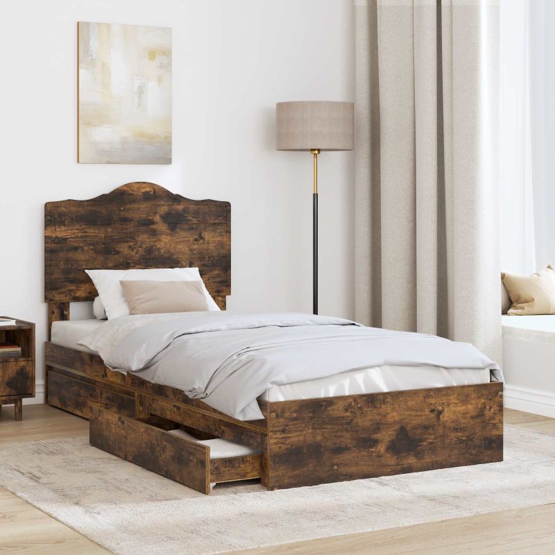 Dieses moderne Bettgestell hat ein schlichtes und funktionales Design, das perfekt in jedes moderne Schlafzimmer passt. Mit sanften Linien und einem minimalistischen Look ist es eine tolle Ergänzung für jeden Schlafbereich und bietet starke Unterstützung für Ihre Matratze. Die Holzwerkstoff-Konstruktion bringt einen Hauch von Eleganz in Ihren Raum und verspricht Langlebigkeit, ohne den Stil zu beeinträchtigen. Schlankes modernes Design: Es überzeugt durch schlichte Eleganz, klare Linien und Funktionalität. Das einfache Design ergänzt die vorhandene Schlafzimmerdekoration, ohne sie zu überladen, und bietet eine stilvolle Lösung für moderne Wohnräume. Holzwerkstoffstruktur: Hergestellt aus hochwertigem, robustem Holzwerkstoff, das für Langlebigkeit bekannt ist. Diese Materialwahl sorgt dafür, dass der Rahmen über Jahre stabile Unterstützung gibt und den alltäglichen Belastungen standhält, während er eine solide Basis für Ihre Matratze bildet. Plattform-Lattenrost: Mit einem stabilen Plattform-Lattenrahmen, der die Lücken zwischen den Latten minimiert. Das Design sorgt nicht nur für gleichmäßige Unterstützung Ihrer Matratze und erhöht den Komfort, sondern es eliminiert auch die Notwendigkeit eines Boxsprings und vereinfacht Ihr Bettsetup. Traditionelles Schubladendesign: Mit integrierten Ausziehschubladen, die praktischen Stauraum bieten. Diese Schubladen haben genug Platz, um Ihre Schlafzimmerutensilien ordentlich aufzubewahren, damit das Zimmer stets aufgeräumt bleibt. Einfache Pflege: Die Pflege dieses Bettgestells ist leicht – einfach mit einem feuchten Tuch abwischen, um es sauber zu halten. Das Holz ist widerstandsfähig gegen Flecken und behält sein ursprüngliches Aussehen bei minimalem Aufwand.