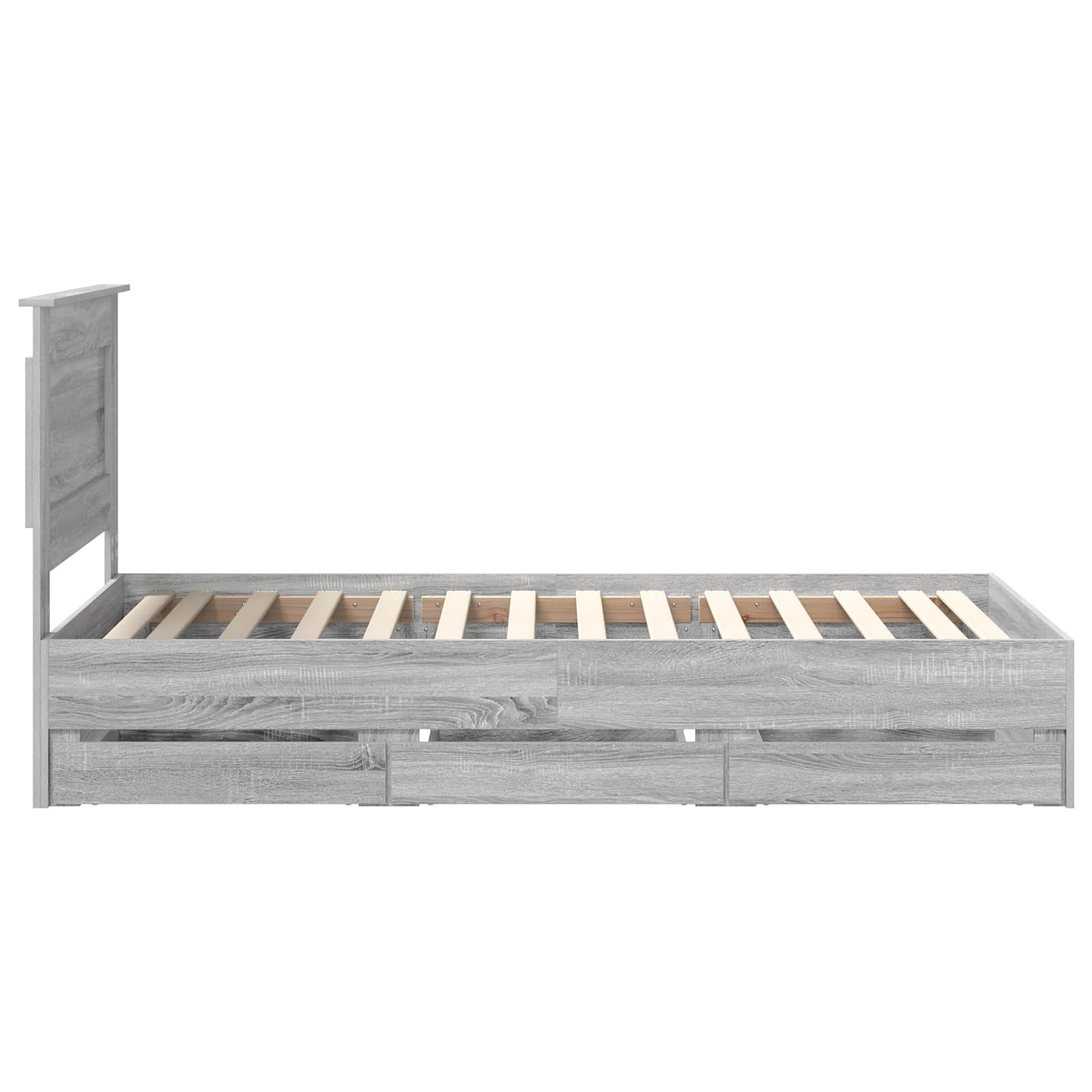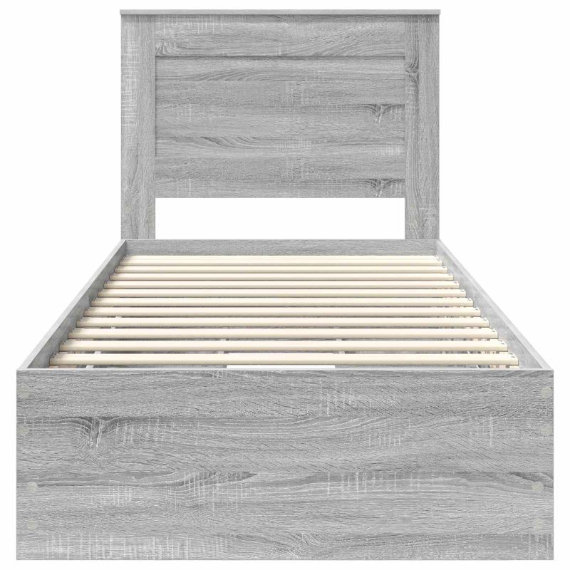 Dieses moderne Bettgestell bringt Eleganz mit einem schlanken, minimalistischen Design für zeitgemäße Räume. Es hat eine schlanke Form, die sich ganz einfach in jeden Schlafzimmerstil integriert. Hauptsächlich aus Holzwerkstoff gemacht, verbindet es Stil mit Langlebigkeit und ist eine luxuriöse, trotzdem praktische Ergänzung für dein Zuhause. Die stabile Lattenbasis sorgt dafür, dass deine Matratze immer optimal unterstützt wird und du jede Nacht gut schlafen kannst. Robustes Holzwerkstoff: Hergestellt aus hochwertigem Holzwerkstoff, kombiniert dieses Bettgestell Qualität und Stil. Es ist abriebfest und macht lange Freude, ohne dass es an visueller Anziehungskraft verliert, und unterstützt Standardmatratzen im perfekten Maße. Integriertes Kopfteil: Das Kopfteil aus Holzwerkstoff sorgt für einen einheitlichen Look. Es sieht schick aus und bietet auch Komfort beim stressfreien Sitzen und Lesen. Versteckte Schubladen: Dieses Bettgestell hat praktische, versteckte Schubladen, die viel Stauraum bieten. Ideal für kleine Räume, wo man clevere Lösungen braucht. Modernes Design: Einfachheit trifft auf Funktionalität — das Bettgestell hat klare Linien und quadratische Beine, perfekt für minimalistische Schlafzimmer. Es steht frei im Raum und braucht keine Wandstütze, was es sehr flexibel macht. Einfache Pflege: Dieses Bettgestell hält man ganz leicht in Schuss. Einfach mit einem feuchten Tuch abwischen, um Staub zu entfernen. Es passt super in jedes moderne Schlafzimmer und bleibt einladend und schick, wie am ersten Tag.