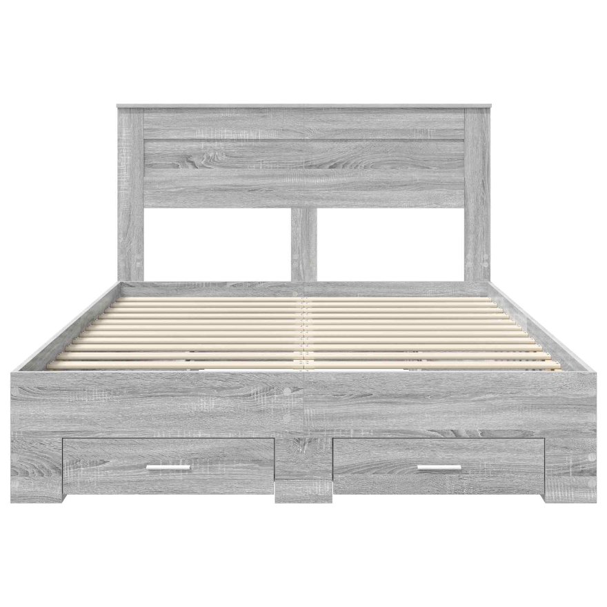 Dieses moderne Bettgestell mit Stauraum hat klare Linien und ein schlichtes Design. So wertet es jedes Schlafzimmer auf. Es verbindet Funktionalität mit einem coolen Look und ist ideal für städtisches Wohnen, wo der Platz wichtig ist. Hergestellt aus hochwertigem Holzwerkstoff, bietet es nicht nur eine bequeme Schlafgelegenheit, sondern auch praktische Möglichkeiten für Stauraum. Das Design ist perfekt für Singles oder Familien, die saubere Räume und effiziente Nutzung schätzen und wird zum eleganten Mittelpunkt deines Raumes. Holzwerkstoffrahmen Hergestellt aus starkem Holzwerkstoff, sorgt dieses Bettgestell für Langlebigkeit und Stabilität, und ist perfekt für jahrelangen Einsatz. Die glatte Oberfläche verleiht ihm ein elegantes Aussehen, das in verschiedene Schlafzimmerstile passt. Funktioneller Lattenrost Mit einem festen Lattenrost, der deiner Matratze tollen Halt gibt. Das Design sorgt für optimale Belüftung und lässt deine Matratze frisch bleiben, was die Lebensdauer verlängert. Diese stabile Struktur macht das Bett zu einer zuverlässigen Wahl für guten Schlaf. Praktische Stauraumschubladen Mit gleitenden Schubladen bietet das Bettgestell viel Platz für Bettwäsche, Kleidung oder andere Dinge. Die Schubladen lassen sich leicht öffnen und schließen, so hast du schnell alles griffbereit. Moderne Metallgriffe Jede Schublade hat schicke Metallstangengriffe, die für einfaches Öffnen sorgen und langlebig sind. Diese Griffe ergänzen den modernen Style des Bettgestells und machen das Ganze noch fancier. Einfache Pflegeanleitungen Die Pflege des Bettgestells ist simpel; einfach mit einem feuchten Tuch abwischen, um es sauber zu halten. Diese unkomplizierte Pflege hält das Bett frisch und verbessert deine Schlafzimmerdekoration.