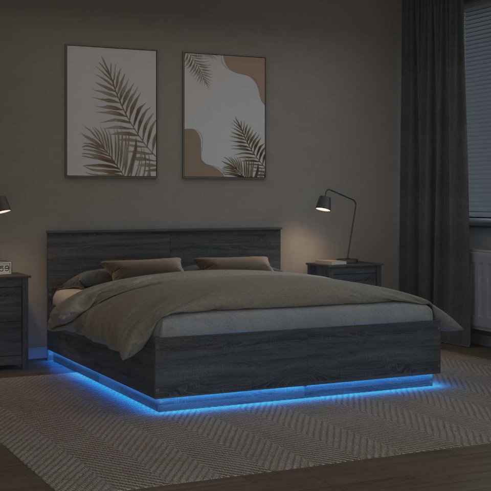 Dieses moderne Bettgestell verwandelt dein Schlafzimmer mit seinem schlanken Design. Der Rahmen aus Holzwerkstoff gibt dem Raum einen minimalistischen Look, der perfekt zu modernen Umgebungen passt. Es ist darauf ausgelegt, dein Schlaferlebnis zu verbessern und ist mit einem verstellbaren Kopfteil und beruhigenden LED-Beleuchtungen ausgestattet - ideal für entspannende Momente. Materialien: Das Bettgestell besteht aus hochwertigem Holzwerkstoff, der stark und formbeständig ist. Diese Materialwahl unterstreicht die moderne Ästhetik deines Schlafzimmers und sorgt gleichzeitig für Stabilität und Langlebigkeit. Enthaltene Komponenten: Das Bett kommt mit einem verstellbaren, wandmontierten Kopfteil, das sowohl Unterstützung bietet als auch Stauraum hat. Die LED-Beleuchtung sorgt für eine stimmungsvolle Atmosphäre, während der praktische USB-Anschluss dir das Laden deiner Geräte vom Bett aus ermöglicht. Eigenschaften/Funktion/Design: Das verstellbare Kopfteil passt sich deinem Komfort an und unterstützt verschiedene Positionen zum Lesen oder Entspannen. Der USB-Anschluss sorgt für unkompliziertes Laden deiner Geräte und die mehrfarbigen LED-Leuchten geben deinem Raum einen persönlichen Akzent. Empfohlene Anwendungen: Perfekt für moderne, minimalistische Schlafzimmer, kann das stilvolle Design dieses Bettgestells jeden Raum in ein trendiges Refugium verwandeln. Es ist ideal für Technikliebhaber, die integrierte Elektronik und einen flexiblen Schlafbereich schätzen. Pflege und Wartung: Um das Bett schön zu halten, einfach mit einem feuchten Tuch abwischen. So bleibt es über die Jahre hinweg ein echter Hingucker und verlängert seine Lebensdauer.