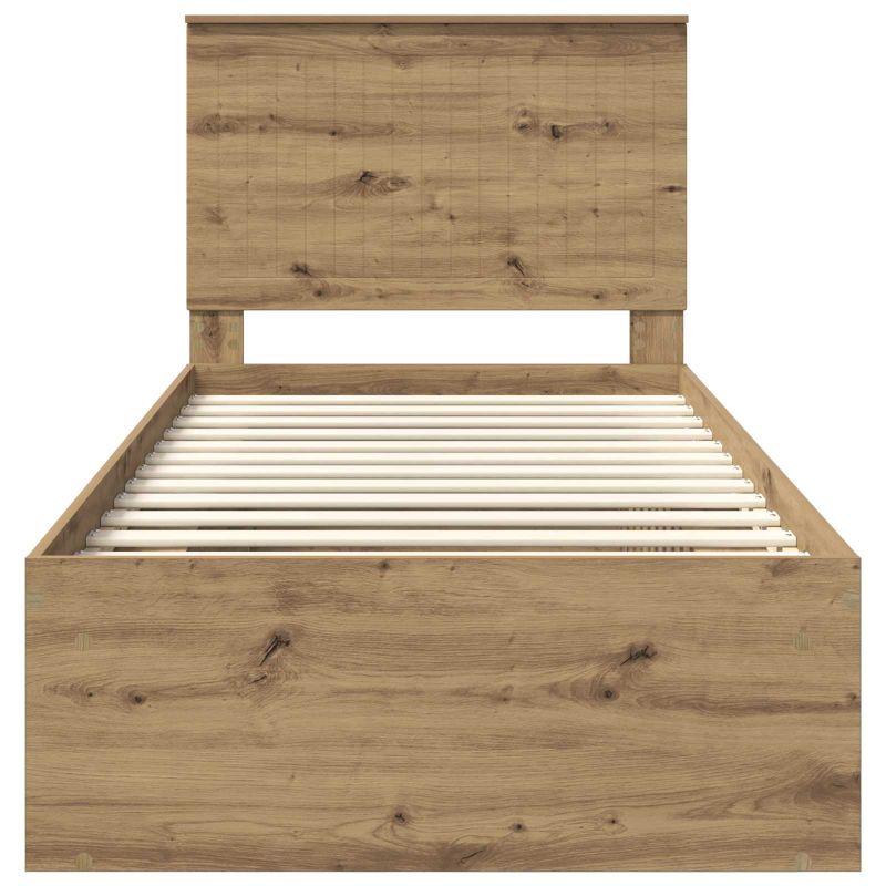 Dieser moderne Bettrahmen ist stylisch und praktisch für jedes Schlafzimmer. Seine rechteckige Form sorgt für einen perfekten Sitz und bringt ein harmonisches Gefühl in deinen Raum. Hergestellt für das moderne Wohnen, zeigen die klaren Linien und das minimalistische Design Eleganz und Einfachheit für alle, die Schönheit und Funktionalität schätzen. Der Rahmen lädt dich ein, dich zu entspannen, und bietet dir einen stabilen Untergrund für ruhige Nächte. Holzwerkstoff und Massivholz Kiefer: Die Hauptstruktur besteht aus Holzwerkstoffen, bekannt für ihre zuverlässige Leistung und schicke Optik. Das massive Kiefernholz-Headboard bringt natürlichen Charme und bietet Stabilität und einen eleganten Touch. Zusammen sorgen diese Materialien für Festigkeit und Komfort beim Schlafen. Fester Lattenrahmen: Mit stabilen, nicht flexiblen Latten gibt dieser Bettrahmen deiner Matratze perfekten Halt und minimiert unerwünschte Bewegungen während du schläfst. Die Latten behalten auch bei regelmäßiger Nutzung ihre Form und sorgen so für ungestörte Nächte. Das Latten-Design sorgt zudem für gute Luftzirkulation und eine langlebige Matratze. Modernes Design: Der Bettrahmen strahlt mit seinen schlichten Linien und minimaler Verzierung Modernität aus und passt perfekt in minimalistische Wohnstile. Praktikabilität ist Teil seines Designs, das ihn zu einer zeitlosen Ergänzung für dein Zuhause macht. Vielseitige Nutzung: Er eignet sich für Hauptbetten, Gästezimmer und Rückzugsorte von Teenagern. Ob du eine neue Wohnung einrichtest oder ein bestehendes Zimmer neu gestalten möchtest, seine Flexibilität macht ihn ideal, um in verschiedene Wohnstile zu passen. Einfache Wartung: Halte dein Bettgestell mühelos in Form – ein einfaches Abwischen mit einem feuchten Tuch reicht aus, um die Oberfläche frisch zu halten. Diese pflegeleichten Eigenschaften sorgen dafür, dass du lange Freude an deinem schicken Bettgestell hast.
