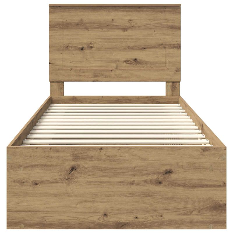 Dieses moderne Bettgestell verleiht deinem Schlafzimmer einen Hauch von Raffinesse. Mit seinen klaren Linien und dem minimalistischen Design ist es genau das Richtige für alle, die Einfachheit und Funktionalität lieben. Ideal für städtische Wohnungen oder moderne Häuser, besteht das Bettgestell aus einer stabilen Mischung aus Spanplatten und massivem Kiefernholz, die sowohl ansprechend als auch langlebig ist. Das stylische Kopfteil bietet zusätzlichen Halt und zieht alle Blicke auf sich, sodass das Bett nicht nur ein Schlafplatz ist, sondern auch ein echtes Highlight in deinem Raum. Materialien: Das Bettgestell kombiniert Spanplatten und massives Kiefernholz und bietet eine gute Mischung aus Preis und Qualität. Spanplatten sorgen für eine stabile Grundlage, während das Kopfteil aus Kiefernholz einen natürlichen Akzent setzt. Diese Materialien bieten langfristige Zuverlässigkeit und ein schönes Finish. Enthaltene Komponenten: Im Paket sind ein stabiler Lattenrost und ein Kopfteil enthalten, beide auf strukturelle Integrität ausgelegt. Der Lattenrost gibt starken Halt, während das Kopfteil rustikale, aber moderne Akzente setzt. Diese Elemente zusammen schaffen ein stabiles und ansprechendes Schlafsystem, das für jede Matratze passt. Einfach zu reinigen: Die Pflege deines Bettgestells ist kinderleicht. Ein Wisch mit einem feuchten Tuch reicht, um es sauber und staubfrei zu halten. Das sorgt für Langlebigkeit und kümmert sich um die Sauberkeit und Ästhetik deines Schlafbereichs. Moderne Ästhetik: Dieses Bettgestell verkörpert modernes Design mit einem schlanken, minimalistischen Look, der zu vielen Einrichtungsstilen passt. Die zeitgemäße Form harmoniert sowohl mit neutraler als auch mit auffälliger Bettwäsche und wertet das Schlafzimmer elegant auf. Pflege & Wartung: Achte darauf, die Lebensdauer deines Bettgestells zu maximieren, indem du die Pflegehinweise befolgst. Regelmäßiges Abwischen der Oberflächen mit einem feuchten Tuch hält nicht nur das Aussehen, sondern sorgt auch dafür, dass das Holz lange gut bleibt - ein zeitloses Stück für dein Zuhause.