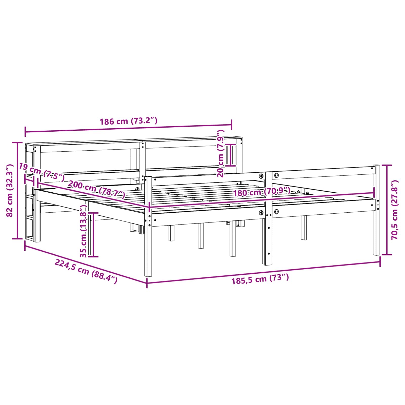 - Matratzengröße: Super King Size Bett (180 cm x 200 cm oder 71" x 79")