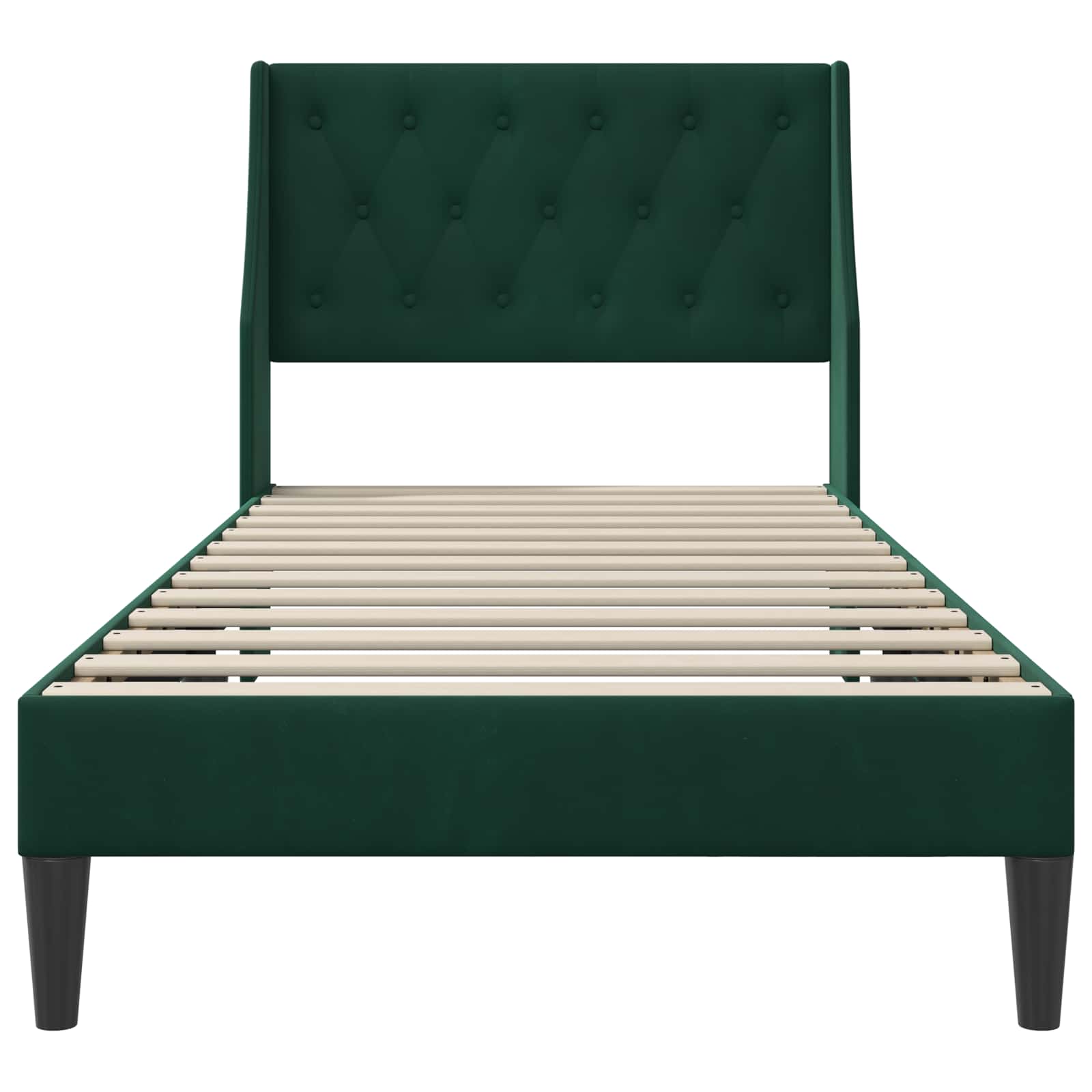 Dieses moderne Bettgestell vereint stylischen Look mit praktischer Funktionalität. Es ist der perfekte Mittelpunkt für jedes Schlafzimmer. Mit dem kuscheligen Samtstoff wirkt der Rahmen echt schick und wertet jeden Raum auf. Das schlanke Design passt zu vielen verschiedenen Stilen - egal ob in minimalistischen Stadtwohnungen oder gemütlichen Vorstadt-Häusern. Stell dir dein perfektes Refugium vor, wo du sowohl gut ausschauen als auch gut schlafen kannst! Materialien: Das Bett hat ein luxuriöses Samtfinish, das einfach toll aussieht und perfekt für alle ist, die elegantes Design mögen. Samt ist langlebig und bietet hohen Komfort, ideal für einen stylischen Blickfang im Schlafzimmer. Zusammen mit der stabilen Sperrholzunterlage ergibt es eine starke Struktur, die super im Alltag ist. Inklusive Komponenten: Das Bett kommt mit einem festen Lattenrost, der viele Matratzentypen unterstützt und dir eine tolle Nachtruhe beschert. Ein Plus sind die gedrehten Beine, die dem modernen Design einen klassischen Touch verleihen und gleichzeitig Stabilität und einen Hingucker bieten. Eigenschaften/Funktion/Design: Das Bettgestell hat einen modernen Stil, der ideal zu aktuellen Wohntrends passt. Es bringt Eleganz, ohne den Rest der Einrichtung zu überladen. Die klaren Linien und die weiche Oberfläche machen jede Schlafzimmerdekoration gemütlich und einladend. Empfohlene Verwendungen: Dieses Bettgestell ist für drinnen gedacht und perfekt für Schlafzimmer, die ein modernes Update brauchen. Es ist vielseitig einsetzbar und passt sowohl zu Erwachsenen als auch zu Teenagern. Ideal für Hauptsuiten und Gästezimmer. Pflege und Wartung: Die Pflege ist super einfach; einfach mit einem feuchten Tuch abwischen, um es frisch und gut zu halten. Diese einfache Pflege sorgt dafür, dass der Samt frei von Staub und Schmutz bleibt und sein Aussehen lange Zeit behält.