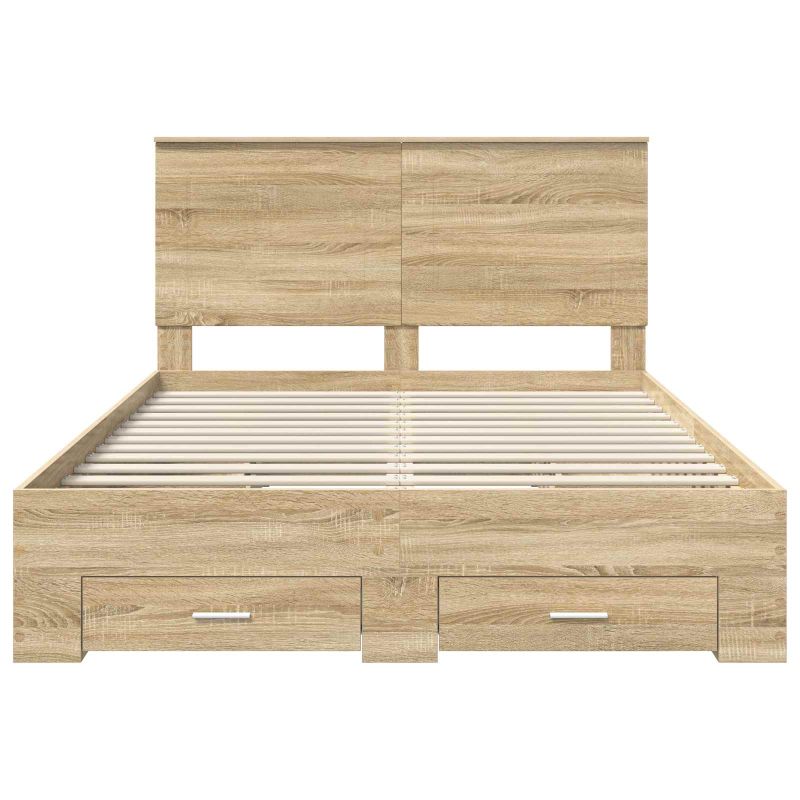 Dieser rechteckige Bettrahmen ist das perfekte Beispiel für modernes Schlafzimmerdesign. Mit seinen klaren Linien und elegantem Look bietet er sowohl Style als auch Funktion. Das Bett ist für alle gedacht, die Einfachheit und Praktikabilität schätzen – eine tolle Ergänzung für jedes Schlafzimmer. Materialien: Hergestellt aus robustem Holzwerkstoff, bietet dieses Bettgestell eine stabile und hochwertige Konstruktion. Holzwerkstoffe sind für ihre Langlebigkeit und Stabilität bekannt und passen ideal in eine minimalistische und stylische Schlafzimmerumgebung. Inklusive Komponenten: Das Bettgestell hat eine praktische Kopfstütze aus Holzwerkstoff, die sowohl gut aussieht als auch Unterstützung bietet. Zusammen mit Schubladen und schicken silbernen Griffen ist das Bett eine moderne und praktische Lösung für jedes Schlafzimmer. Merkmale / Funktion / Design: Mit Fokus auf Praktikabilität bietet das Bettgestell viel Stauraum durch clevere, integrierte Schubladen. Damit gehört Unordnung der Vergangenheit an. Sein modernes Design fügt sich nahtlos in jedes zeitgenössische Schlafzimmer ein und verbindet Stil mit Nützlichkeit. Empfohlene Verwendung: Ideal für den Innenbereich, besonders in Schlafzimmern. Dieses Bettgestell bietet einen Rückzugsort für Schlaf und praktische Stauraumlösungen, die für einen aufgeräumten Raum sorgen. Der moderne Look passt gut zu verschiedenen Raumdesigns. Pflege und Wartung: Um den Look zu erhalten, einfach regelmäßig mit einem feuchten Tuch abwischen. Damit bleibt das Bett so ansprechend und funktionell wie bei der ersten Montage und verspricht dauerhafte Schönheit.