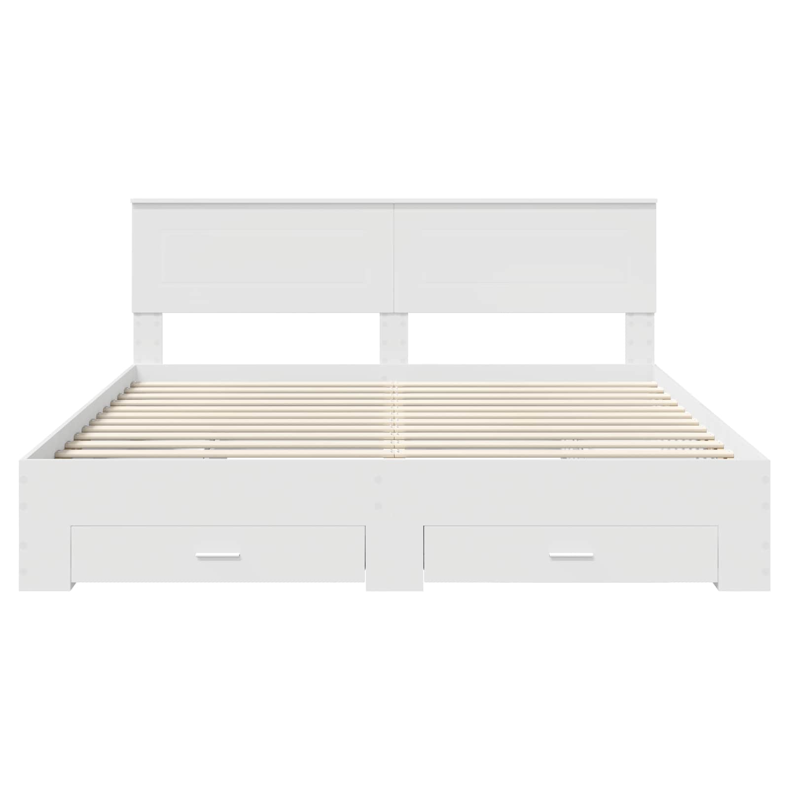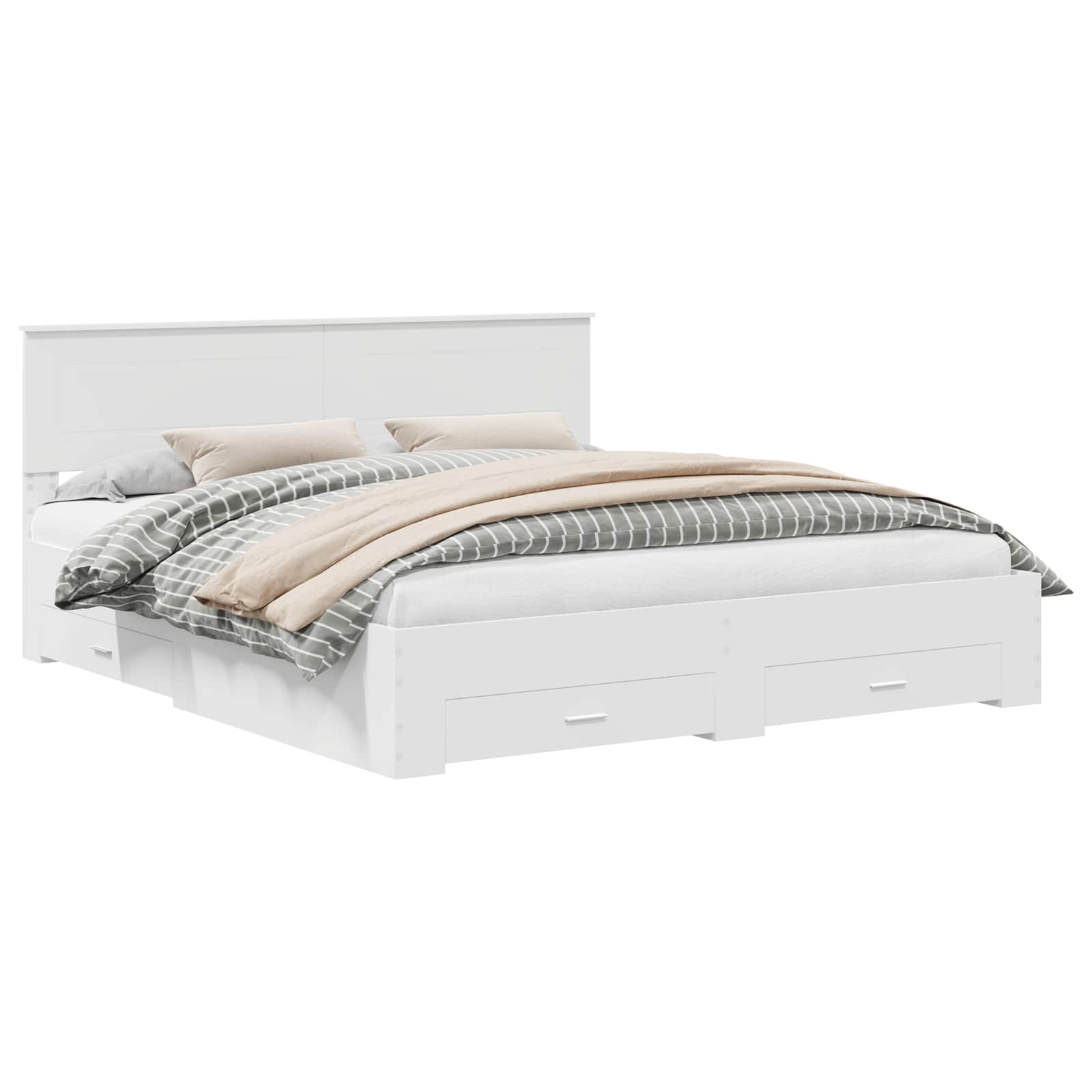 Dieses schicke moderne Aufbewahrungsbettgestell bringt Einfachheit und Funktionalität in dein Schlafzimmer. Es ist für Räume gedacht, wo Platz und Ordnung wichtig sind. Es verbindet Form und Funktion mit klaren Linien und einem dezenten Look. Ideal für alle, die ein gutes Gleichgewicht zwischen Stil und Praktikabilität suchen, wertet dieses Bettgestell deinen Schlafbereich sowohl optisch als auch praktisch auf. Schon beim ersten Blick spricht das schlichte und moderne Design an und macht es zur perfekten Wahl für städtische Apartments, moderne Häuser und Zeitgemäße Schlafzimmer. Holzwerkstoffkonstruktion Dieses Bettgestell nutzt Holzwerkstoff, bekannt für Stabilität und Langlebigkeit. Der moderne Look bringt einen Hauch von Eleganz in jeden Raum und sorgt dafür, dass es auch bei regelmäßigem Gebrauch stabil bleibt. Es kombiniert schlanke Optik mit Robustheit, die jahrelang hält. Integrierte Stauraumschubladen Dieses Bett ist darauf ausgelegt, Platz zu sparen und hat Schubladen aus dem gleichen Holzwerkstoff, die perfekt ins Design passen. Sie bieten genug Platz für Bettwäsche, Kleidung oder andere Sachen und reduzieren Unordnung im Schlafzimmer. Die traditionellen Schubladengriffe ermöglichen schnellen Zugriff auf alles, was du brauchst. Kopfteil inklusive Aus Holzwerkstoff gefertigt, gibt das Kopfteil dem Bettgestell eine abgerundete Optik. Es ist nicht nur dekorativ, sondern auch praktisch, damit du beim Lesen oder TV schauen im Bett bequem anlehnen kannst. Das minimalistische Design betont den modernen Look des Bettes und verbessert die Atmosphäre im Schlafzimmer. Einfache Pflege & Reinigung Du kannst die Oberfläche einfach mit einem feuchten Tuch abwischen, was die Pflege super simpel macht. Die schlichten Pflegehinweise sorgen dafür, dass dein Bettgestell frisch und schick bleibt, ohne viel Aufwand, sodass du den Stil ganz ohne Stress genießen kannst. Bequemer Aufbau Der Aufbau ist kinderleicht und braucht nur zwei Personen und einen Schraubendreher. Jedes Teil ist gut durchdacht, sodass der Aufbau deines neuen Bettes so angenehm und einfach wie möglich ist und du gleich zu Beginn ein positives Erlebnis hast.