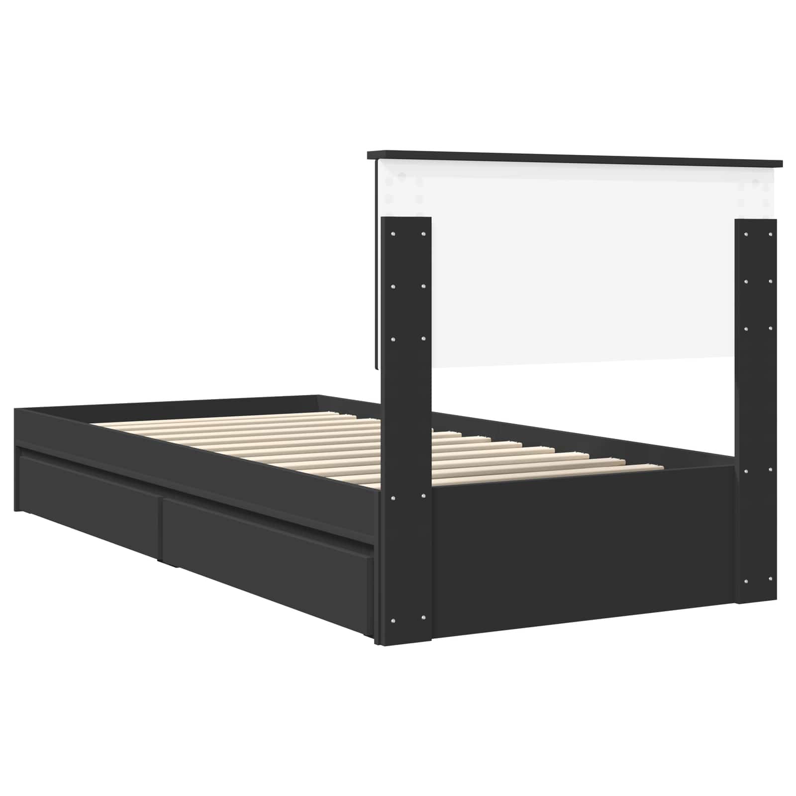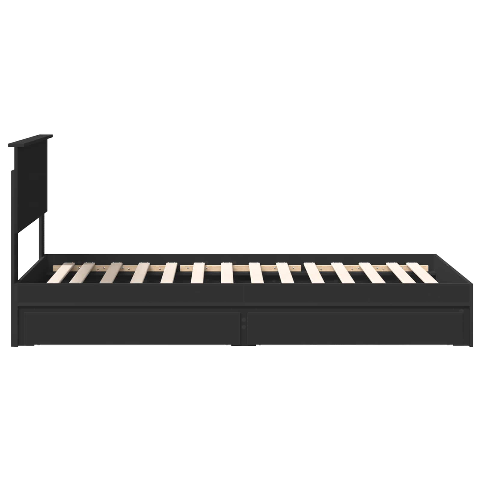 Das moderne Bettgestell mit Stauraum kombiniert Stil und Funktionalität – ideal für zeitgemäße Wohnungen. Es aus Holzwerkstoff gefertigt und hat ein elegantes Design, das durch klare Linien und funktionale Details ergänzt wird. Es passt hervorragend in jedes Schlafzimmer und ist vielseitig einsetzbar, was es zur perfekten Wahl für Familienzimmer oder kleine Wohnungen macht. Materialien: Dieses Bettgestell ist komplett aus Holzwerkstoff gemacht. Es überzeugt durch seine stabile Bauweise und glatte Oberfläche. Holzwerkstoff ist langlebig und wirkt modern und schick. Die feine Holzstruktur gibt dem Bett eine frische Note, bei gleichzeitiger Funktionalität, die tägliche Nutzung problemlos meistert. Enthaltene Komponenten: Das Bett kommt mit einem festen Lattenrost, der optimalen Halt und Komfort für erholsamen Schlaf bietet. Das Kopfteil aus Holzwerkstoff fügt einen Hauch von Eleganz hinzu und vereint Form und Funktion. Die praktischen Schubladen sind super handlich und bieten viel Stauraum, ohne Platz im Raum wegzunehmen. Merkmale / Funktion / Design: Der höhenverstellbare Fuß des Bettes lässt sich nach deinen Wünschen anpassen. Die wasserabweisende Oberfläche erleichtert die Pflege und schützt vor Verschüttungen und Feuchtigkeit, sodass das Bett lange schön bleibt. Es lässt sich auch ganz easy in der Höhe verstellen für mehr Komfort. Empfohlene Verwendungen: Ideal für Schlafzimmer, die Style und Stauraum brauchen. Die eingebauten Schubladen machen das Bett nicht nur optisch ansprechend, sondern bieten auch viel Platz, was es perfekt für Wohnungen und Familienhäuser macht. Pflege & Wartung: Dank der wasserabweisenden Oberfläche ist die Pflege kinderleicht: Einfach mit einem feuchten Tuch abwischen. Verwende keine aggressiven Reinigungsmittel, um die Oberfläche zu schonen. So bleibt das Bett über die Jahre gut in Schuss.