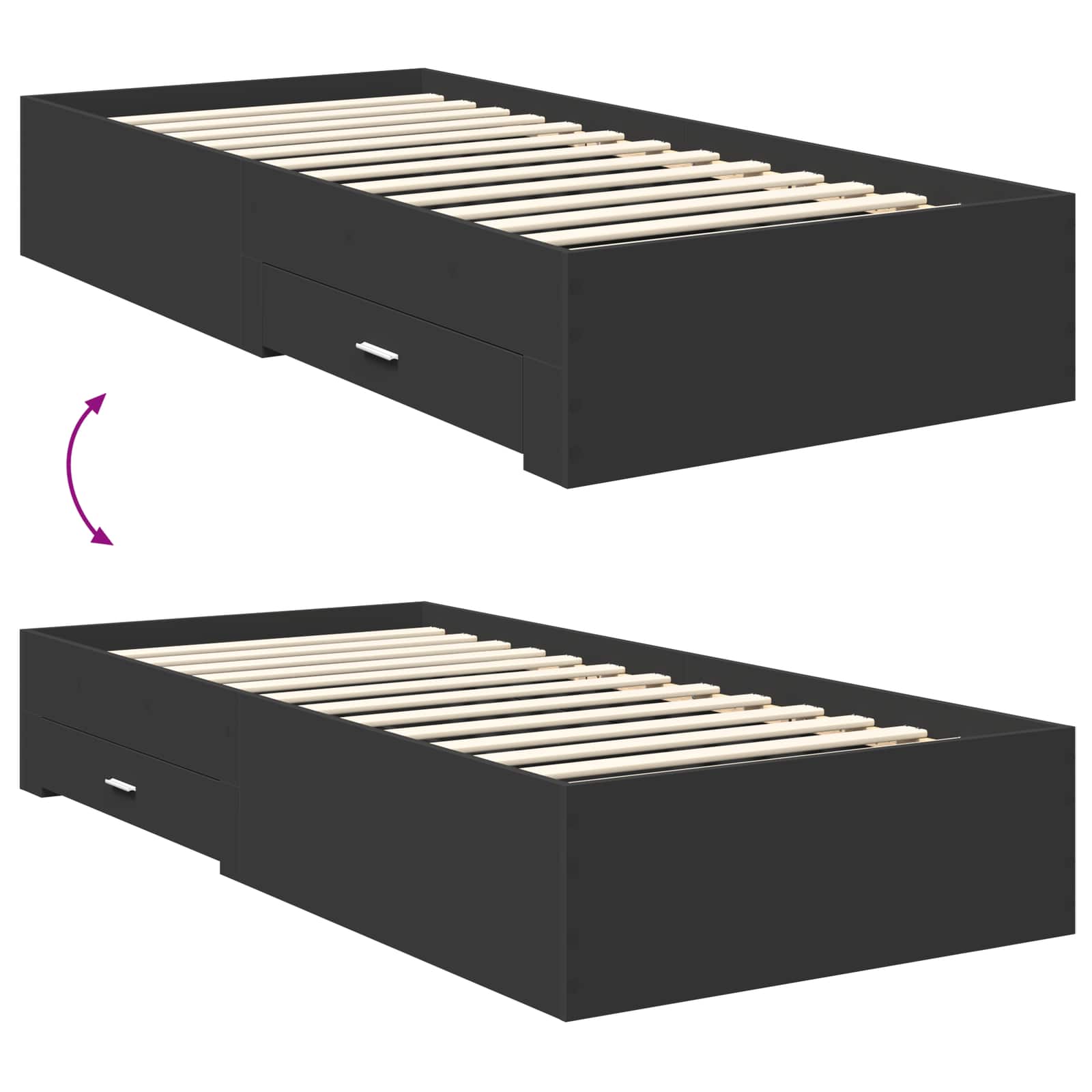 Mit diesem modernen Stauraumbettgestell kombinierst du Funktionalität und Stil auf entspannte Weise in deinem Schlafzimmer. Es hat das typische, schlichte Design mit klaren Linien und nicht viel Schnickschnack. So kannst du den Raum optimal nutzen, ohne dass es unordentlich wirkt. Das schlanke Design passt gut in jede Schlafzimmergestaltung und schafft eine einladende Atmosphäre. Holzwerkstoff-Konstruktion Aus robustem Holzwerkstoff gefertigt, ist dieses Bettgestell für den täglichen Gebrauch gemacht, behält aber gleichzeitig seinen modernen Look. Die hochwertige Verarbeitung sorgt für eine stabile Grundlage für ruhige Nächte und ist ganz leicht zu pflegen. Integrierte Stauraumlösungen Mit clever eingebauten Schubladen aus solidem Holzwerkstoff hast du genügend Platz für Klamotten oder Bettzeug. Das hält dein Schlafzimmer aufgeräumt und sorgt dafür, dass du auch Platz für andere Dinge schaffst. Verstellbares Fußteil Das manuell verstellbare Fußteil passt sich deinen Wünschen an. Egal ob für mehr Komfort oder einen speziellen Look, so kannst du das Bett flexibel einsetzen und ideal in dein Zimmer integrieren. Metallgriff Die praktischen Metallgriffe bieten einen leichten Zugang zu den Schubladen und bringen Stil. Die silbernen Griffe sind modern und erleichtern das Öffnen und Schließen. Einfache Pflege Die Pflege ist super einfach: Ein feuchtes Tuch reicht, um das Bett strahlend sauber zu halten. So bleibt es über lange Zeit in top Zustand und wird zum Blickfang in deinem Schlafzimmer.