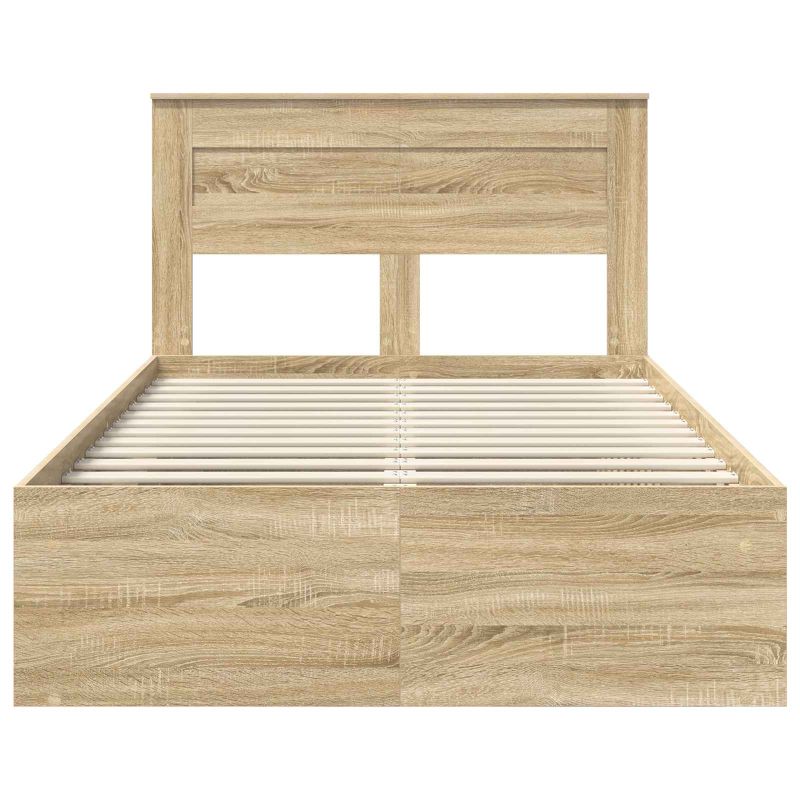 Das moderne Bettgestell ist ein echter Hingucker! Es verbindet zeitgenössischen Stil mit praktischen Aspekten. Es wurde so designt, dass es jede Einrichtung ergänzt und spiegelt die Einfachheit und klaren Linien wider, die den modernen Stil prägen. Die rechteckige Form verleiht dem Raum ein schlankes Aussehen und macht es zur idealen Wahl für Fans von minimalistischem Design. Dieses Bettgestell ist nicht einfach nur ein Möbelstück; es bietet auch Komfort und Stil und verwandelt die Atmosphäre des Zimmers in eine angenehme. Massivholz-Kopfteil Aus solidem Kiefernholz gefertigt, bringt das Kopfteil Langlebigkeit und einen Hauch von natürlicher Eleganz. dieses Material ist bekannt für seine Robustheit und passt super in jedes Schlafzimmer-Thema und schafft einen erdigen Hintergrund. Holzwerkstoffrahmen Die Hauptstruktur des Bettes besteht aus Holzwerkstoff, der für seine Stabilität und Stärke bekannt ist. Das verbessert die Haltbarkeit und sorgt für eine gute Nachtruhe, ohne das schicke Aussehen zu beeinträchtigen. Fester Lattenrost Mit stabilen Latten sorgt dieses Design für besseren Halt der Matratze und garantiert langanhaltenden Komfort. Die Latten sind clever angeordnet und tragen zu einer stabilen, zuverlässigen Schlafoberfläche bei. Minimalistisches modernes Design Dieses Bettgestell überzeugt durch klare Linien und eine funktionale Struktur, ideal für moderne Wohnräume. Sein Stil lässt sich problemlos mit anderen Schlafzimmermöbeln kombinieren und sorgt so für ein ordentliches und aufgeräumtes Gesamtbild. Einfache Pflege Pflegeleichtigkeit ist wichtig: einfach mit einem feuchten Tuch abwischen, um Staub und Schmutz fernzuhalten. So sieht der Rahmen auch nach längerer Zeit noch frisch aus und bleibt ein stilvolles Highlight in deinem Schlafzimmer.