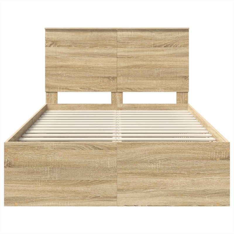 Dieses moderne Bettgestell verleiht deinem Schlafzimmer einen Hauch von Raffinesse. Mit seinen klaren Linien und dem minimalistischen Design ist es genau das Richtige für alle, die Einfachheit und Funktionalität lieben. Ideal für städtische Wohnungen oder moderne Häuser, besteht das Bettgestell aus einer stabilen Mischung aus Spanplatten und massivem Kiefernholz, die sowohl ansprechend als auch langlebig ist. Das stylische Kopfteil bietet zusätzlichen Halt und zieht alle Blicke auf sich, sodass das Bett nicht nur ein Schlafplatz ist, sondern auch ein echtes Highlight in deinem Raum. Materialien: Das Bettgestell kombiniert Spanplatten und massives Kiefernholz und bietet eine gute Mischung aus Preis und Qualität. Spanplatten sorgen für eine stabile Grundlage, während das Kopfteil aus Kiefernholz einen natürlichen Akzent setzt. Diese Materialien bieten langfristige Zuverlässigkeit und ein schönes Finish. Enthaltene Komponenten: Im Paket sind ein stabiler Lattenrost und ein Kopfteil enthalten, beide auf strukturelle Integrität ausgelegt. Der Lattenrost gibt starken Halt, während das Kopfteil rustikale, aber moderne Akzente setzt. Diese Elemente zusammen schaffen ein stabiles und ansprechendes Schlafsystem, das für jede Matratze passt. Einfach zu reinigen: Die Pflege deines Bettgestells ist kinderleicht. Ein Wisch mit einem feuchten Tuch reicht, um es sauber und staubfrei zu halten. Das sorgt für Langlebigkeit und kümmert sich um die Sauberkeit und Ästhetik deines Schlafbereichs. Moderne Ästhetik: Dieses Bettgestell verkörpert modernes Design mit einem schlanken, minimalistischen Look, der zu vielen Einrichtungsstilen passt. Die zeitgemäße Form harmoniert sowohl mit neutraler als auch mit auffälliger Bettwäsche und wertet das Schlafzimmer elegant auf. Pflege & Wartung: Achte darauf, die Lebensdauer deines Bettgestells zu maximieren, indem du die Pflegehinweise befolgst. Regelmäßiges Abwischen der Oberflächen mit einem feuchten Tuch hält nicht nur das Aussehen, sondern sorgt auch dafür, dass das Holz lange gut bleibt - ein zeitloses Stück für dein Zuhause.