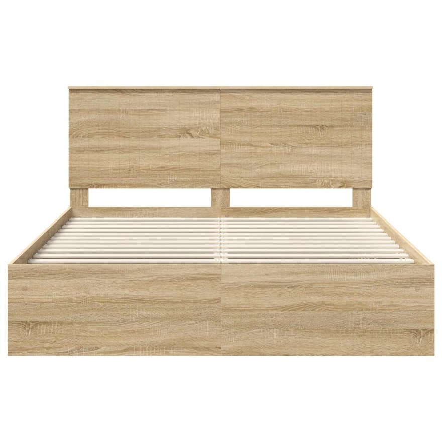 Dieser moderne Bettrahmen ist stylisch und praktisch für jedes Schlafzimmer. Seine rechteckige Form sorgt für einen perfekten Sitz und bringt ein harmonisches Gefühl in deinen Raum. Hergestellt für das moderne Wohnen, zeigen die klaren Linien und das minimalistische Design Eleganz und Einfachheit für alle, die Schönheit und Funktionalität schätzen. Der Rahmen lädt dich ein, dich zu entspannen, und bietet dir einen stabilen Untergrund für ruhige Nächte. Holzwerkstoff und Massivholz Kiefer: Die Hauptstruktur besteht aus Holzwerkstoffen, bekannt für ihre zuverlässige Leistung und schicke Optik. Das massive Kiefernholz-Headboard bringt natürlichen Charme und bietet Stabilität und einen eleganten Touch. Zusammen sorgen diese Materialien für Festigkeit und Komfort beim Schlafen. Fester Lattenrahmen: Mit stabilen, nicht flexiblen Latten gibt dieser Bettrahmen deiner Matratze perfekten Halt und minimiert unerwünschte Bewegungen während du schläfst. Die Latten behalten auch bei regelmäßiger Nutzung ihre Form und sorgen so für ungestörte Nächte. Das Latten-Design sorgt zudem für gute Luftzirkulation und eine langlebige Matratze. Modernes Design: Der Bettrahmen strahlt mit seinen schlichten Linien und minimaler Verzierung Modernität aus und passt perfekt in minimalistische Wohnstile. Praktikabilität ist Teil seines Designs, das ihn zu einer zeitlosen Ergänzung für dein Zuhause macht. Vielseitige Nutzung: Er eignet sich für Hauptbetten, Gästezimmer und Rückzugsorte von Teenagern. Ob du eine neue Wohnung einrichtest oder ein bestehendes Zimmer neu gestalten möchtest, seine Flexibilität macht ihn ideal, um in verschiedene Wohnstile zu passen. Einfache Wartung: Halte dein Bettgestell mühelos in Form – ein einfaches Abwischen mit einem feuchten Tuch reicht aus, um die Oberfläche frisch zu halten. Diese pflegeleichten Eigenschaften sorgen dafür, dass du lange Freude an deinem schicken Bettgestell hast.