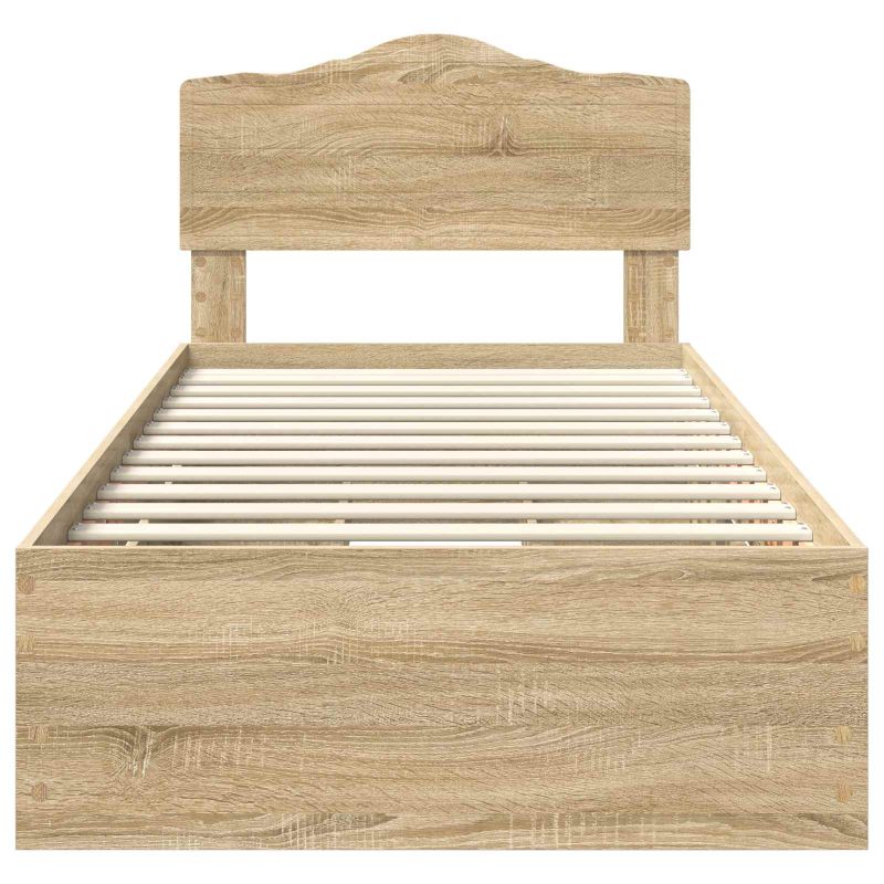Das elegante Bettgestell setzt auf modernes Design für dein Schlafzimmer, perfekt abgestimmt auf verschiedene Einrichtungsstile dank der klaren Linien. Hergestellt für alle, die sowohl Look als auch Funktionalität schätzen, wandelt seine schlichte Eleganz deinen Schlafbereich in eine Oase der Ruhe. Ob für Singles oder Paare – dieses Bett ist das perfekte Highlight in deinem Schlafzimmer. Holzwerkstoffrahmen: Hergestellt aus hochwertigem Holzwerkstoff, der abriebfest ist und für den täglichen Gebrauch konzipiert wurde. So bleibt dein Bett stabil und sieht gleichzeitig toll aus – ein zeitloser Hingucker! Versteckte Schubladen: Diese Schubladen sind clever in die Struktur integriert und bieten viel Stauraum, ohne das Design zu stören. Ideal, um Ordnung zu halten und Dinge wie Bettwäsche und Kleidung aus dem Blickfeld zu halten. Robustes Kopfteil: Das Kopfteil aus Holzwerkstoff ist sowohl stylisch als auch praktisch – es dient als bequeme Rückenlehne und hebt die moderne Optik des Bettes hervor. Freistehende Montage: Das Bett ist flexibel aufstellbar und braucht keine Wandunterstützung. Das gibt dir die Freiheit, das Bett ganz nach deinem Geschmack zu positionieren. Pflege & Wartung: Dein Bett bleibt top in Schuss mit einem feuchten Tuch, um Staub zu entfernen. So bleibt es lange ein Blickfang in deinem Schlafzimmer.