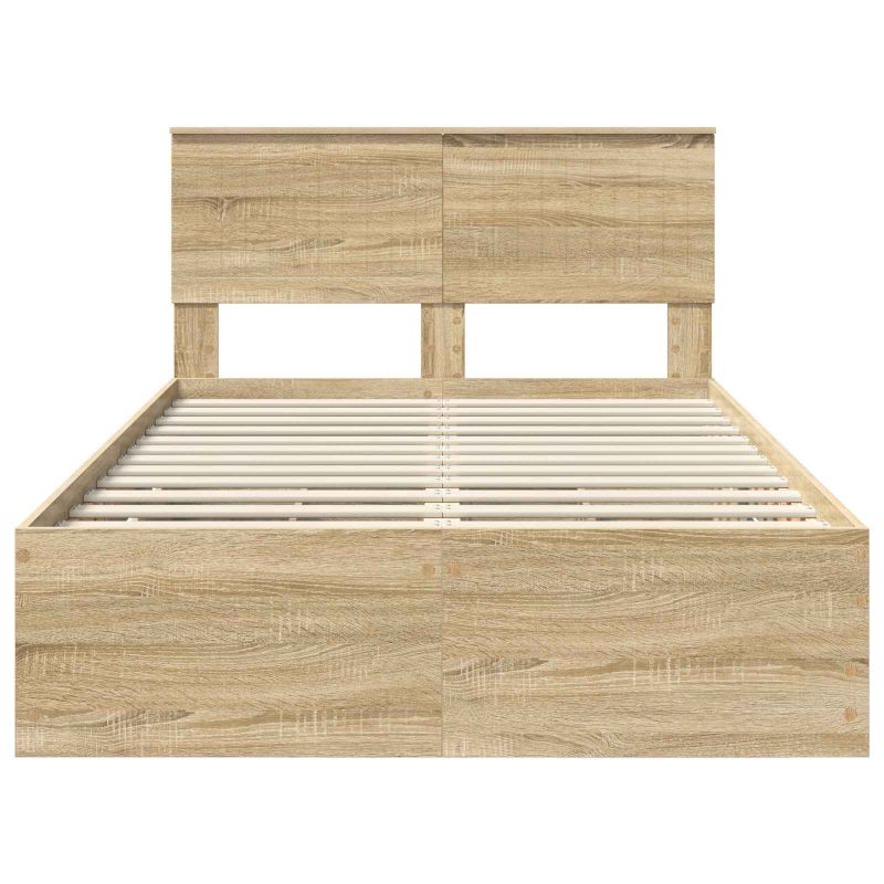 Dieser moderne Bettrahmen kombiniert Stil mit Funktion und ist eine coole Ergänzung für jedes Schlafzimmer. Er begeistert mit klaren Linien und wenig Schnickschnack und passt super zu verschiedenen Geschmackrichtungen. Perfekt für die, die einen frischen und modernen Look wollen, ist der Bettrahmen wie eine Leinwand für kreative Bettwäsche, egal ob mutig oder zurückhaltend. Holzwerkstoffe: Unser Bettrahmen besteht aus starken Holzwerkstoffen, die sogar in stark genutzten Räumen gut gegen Abnutzung bestehen. Das Material sieht nicht nur toll aus, sondern bietet auch eine stabile Basis für guten Schlaf. Versteckte Stauraumlösungen: Er hat clevere Schubladen, die helfen, dein Zimmer ordentlich zu halten. Diese Fächer sind perfekt für alle, die auf gutes Aussehen und praktische Lösungen wert legen und helfen dabei, die Funktionalität des Bettrahmens zu verbessern. Einfache slatted Rahmen: Der Rahmen hat ein festes slatted Design mit Holzlatten, die super Unterstützung bieten. So ist der Rahmen eine tolle Basis für Matratzen und sorgt für gute Luftzirkulation, damit dein Schlaf frisch bleibt. Stabilitätsdesign: Die stabilen, quadratischen Beine bieten sicheren Halt. Ihr modernes Design passt perfekt zum minimalistischen Look des Bettes und verbessert die Stabilität ohne Kompromisse beim Stil. Pflegeleicht: Einfach mit einem feuchten Tuch abwischen, um ihn in Top-Zustand zu halten. Dieses Möbelstück macht die Pflege leicht und sorgt dafür, dass seine Eleganz auch über die Zeit bleibt.