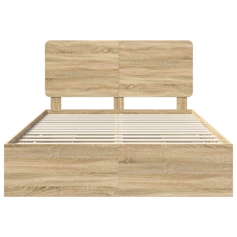 Dieses moderne Bettgestell strahlt Einfachheit und Funktionalität aus. Mit seinen klaren Linien und dem minimalistischen Design passt es perfekt in ein zeitgemäßes Schlafzimmer. Die rechteckige Form und die Komponenten aus Holzwerkstoff sorgen für einen schlichten Look. Wenn du subtilen Stil und Praktikabilität schätzt, wird dieses Bettgestell die Ästhetik deines Schlafzimmers mit seinem modernen Design aufwerten. Holzwerkstoff-Konstruktion: Das Bettgestell aus Holzwerkstoff ist stark und langlebig, was es zu einer zuverlässigen Wahl für deine Wohnung macht. Das Material ist abriebfest und sorgt für eine langanhaltende optische Anziehung, egal ob in belebten Bereichen oder ruhigen Schlafzonen. Versteckter Schubladenstauraum: Die versteckte Schublade nutzt den Platz im Schlafzimmer optimal aus und bietet praktische, diskrete Aufbewahrungsmöglichkeiten. So bleibt alles ordentlich und sorgt für eine aufgeräumte Atmosphäre. Robuster Lattenrahmen: Mit einem stabilen Lattenrahmen unterstützt das Bett verschiedene Matratzenarten. Dieses Design sorgt für eine komfortable Liegefläche und kombiniert Stabilität mit modernem Stil. Einfache Montage mit beiliegenden Werkzeugen: Mit dem Bettgestell ist die Montage kinderleicht und benötigt nur zwei Personen mit einem Schraubendreher. Alle erforderlichen Teile sind enthalten, damit alles reibungslos funktioniert - ohne Stress durch fehlende Werkzeuge. Minimale Pflege: Die Pflege des Bettgestells ist simpel - einfach mit einem feuchten Tuch abwischen. So wird es immer schön sauber und trägt zur schlichten Eleganz des Designs bei.